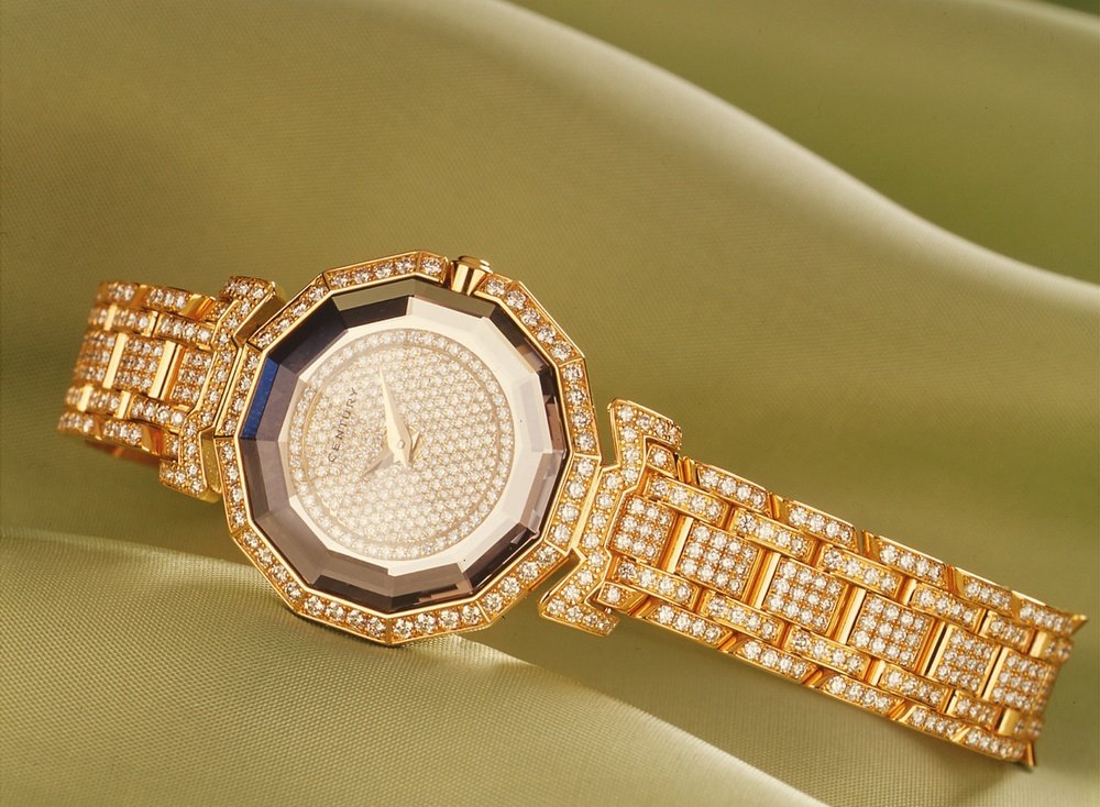 Century is announcing the return of yellow gold with an exceptional model. The precious metal makes up the bracelet with its finely articulated links, wave-shaped attachments and the base of the case which holds the block of faceted sapphire. The latter, which is harder than ever before, is reflected in the countless diamonds set in both the bezel and the bracelet attachments. In River to Top Wesselton quality, they all add up to a weight of 6.72 carats.