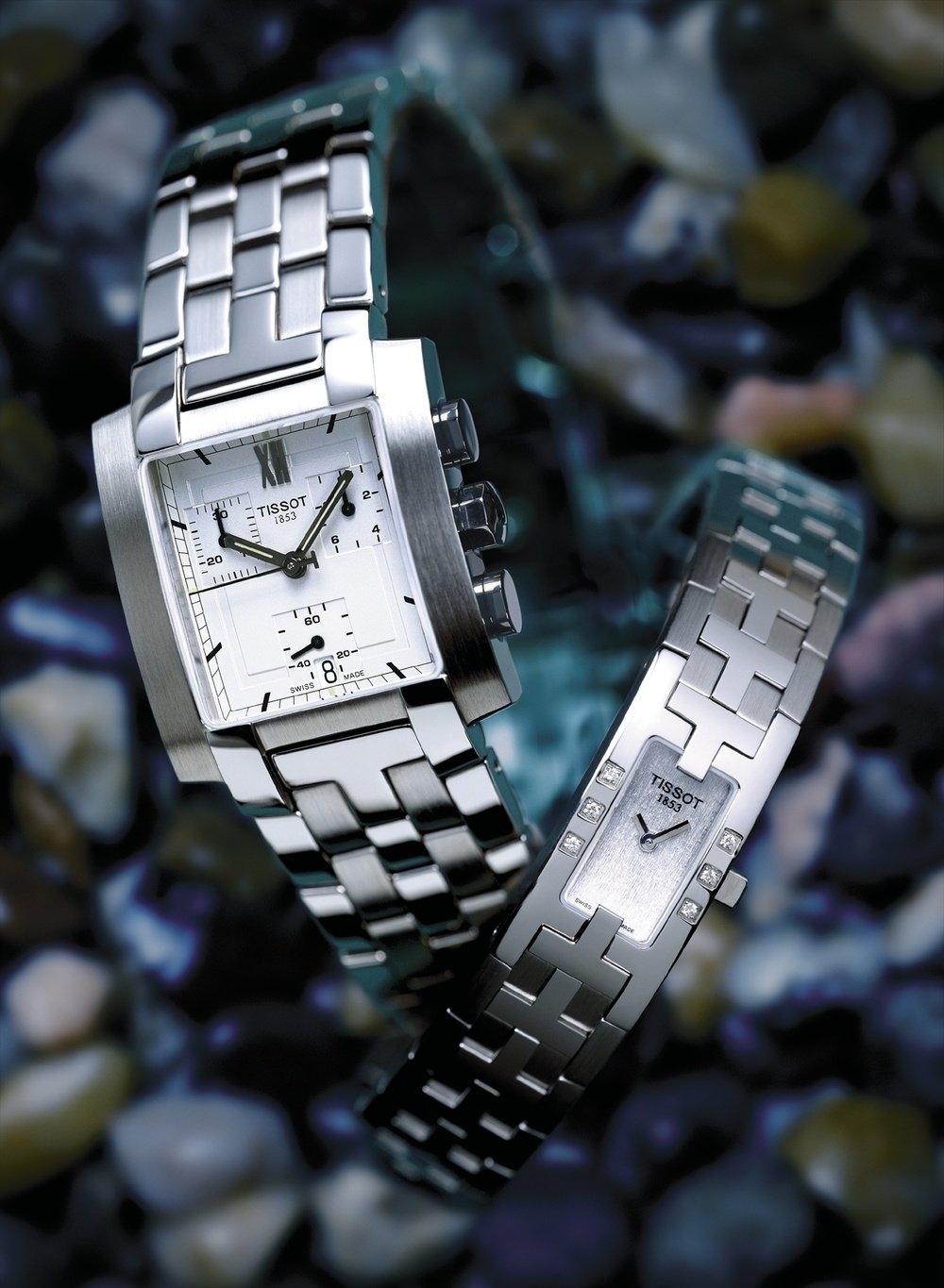 Here we have the new Chrono TXL, the youngest member of a resolutely masculine collection, which is distinguished by its square case, its pure lines and its highly legible, large dial. And here we have is the new T4, a highly refined watch, with a dial set with six diamonds and a highly graphic bracelet, taking up the “T” symbol of the brand. Two watches with a great deal of character - two new facets of the Tissot style.