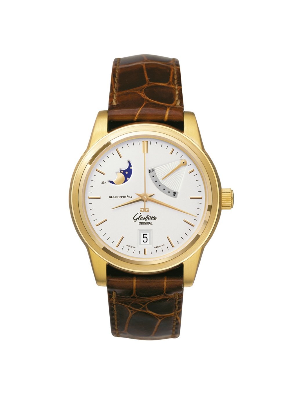 Silver with appliqués, power reserve at 2 o'clock,