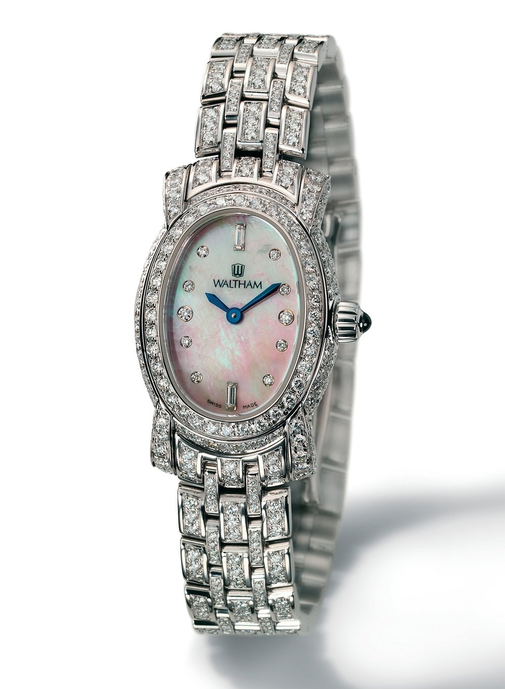 If diamonds are a woman’s best friend, then the new Lady Waltham Jewelry, a truly feminine watch, certainly has what it takes to seduce them. Its case, mother-of-pearl dial and white gold bracelet are enhanced by 520 full-sized diamonds, adding up to 4.70 carats! The crowning of a century and a half of sophistication and elegance.