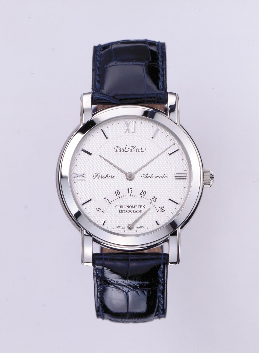 Paul Picot has chosen the sobriety of a Firshire Ronde to highlight the so-called “retrograde second” function. After having travelled through the arc of a circle, the seconds hand graciously jumps back to zero to continue its dance over the counter. And a further original feature: the minutes are not divided into sixty seconds but into two times thirty seconds.