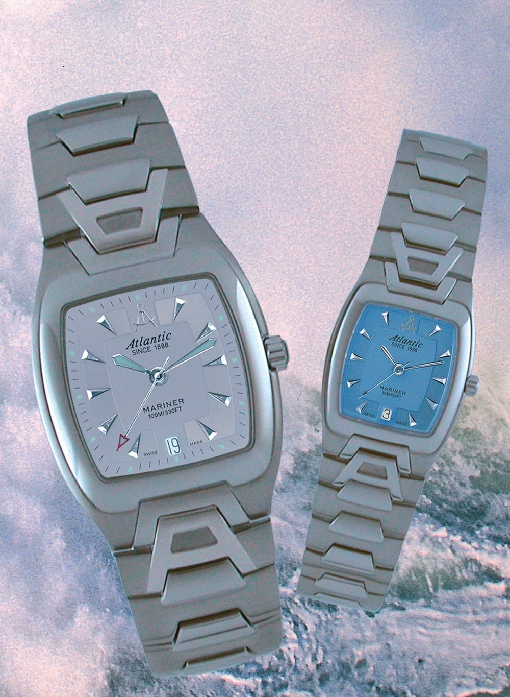A new Mariner line is setting sail. This avant-garde model unites style with modernity, and sport with simplicity. The integral steel bracelet has a distinctive “A”-shaped link to match the case. The ladies’ model is available with a mother-of-pearl dial adorned with four imitation stones. All the crowns have double protective gaskets to better withstand the seas.
