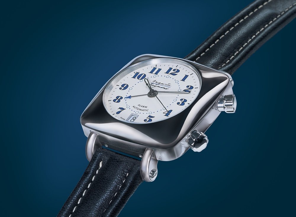 The new Rumba from Auguste Reymond offers an extravagant case with an AS 5008 alarm movement and a double automatic winding mechanism. Its cushion-shaped case is fitted with an original system of movable bracelet attachments. The Rumba alarm is being produced in a limited series of 999. The Rumba comes with a number of other calibres with complications, including the automatic Valjoux 7750 chronograph.