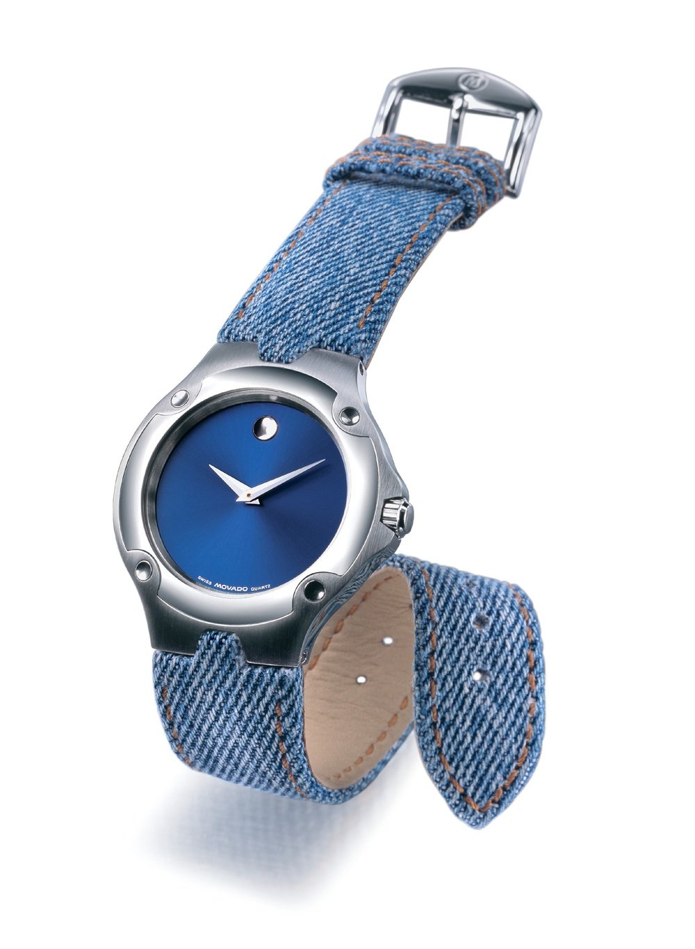 Movado combines a casual approach and elegance in its new SE Denim model with contrasting shades. The famous “Museum” dial is adorned by a sun motif on a tinted blue background. The bracelet in aged denim lends a relaxed touch to the model, which can also take on a prestigious look thanks to the option of a bezel set with diamonds. With extremely bold dimensions and a geometric design, this watch sets out to be resolutely up-to-the-minute.