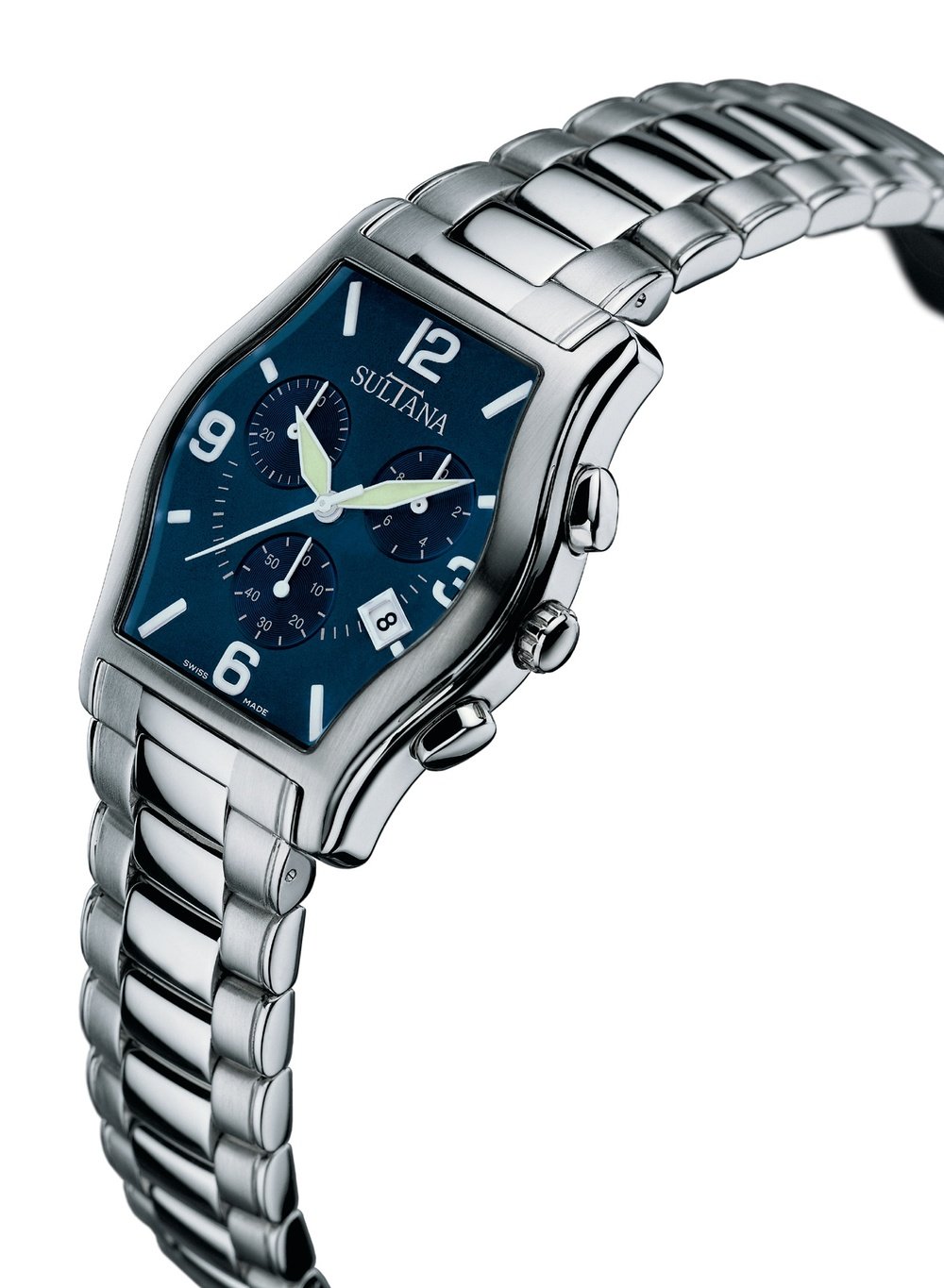 Sultana have chosen the evocative name “Horatio” for their elegant new chronograph with a barrel-shaped case, presented with a choice of dial colours, on leather straps or on a solid steel link bracelet.