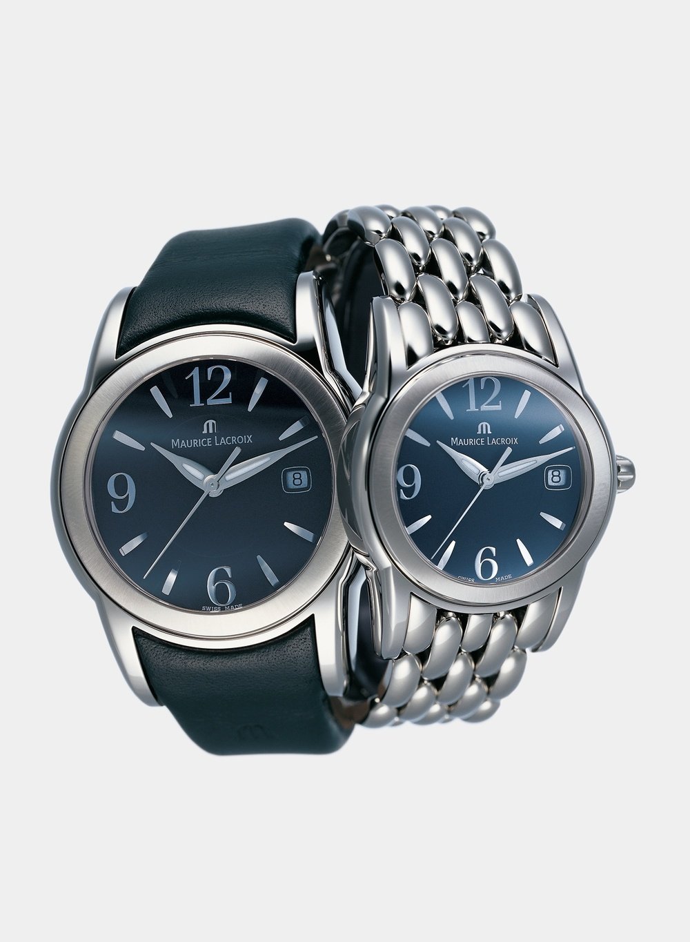 A new, original design from Maurice Lacroix: this model with a curved spherical case blends exceedingly harmoniously with the bracelet. The brushed bezel stands out subtly from the case in polished steel. The Sphere model is available in eight versions for men and eight for women, mixing colours in a highly contemporary fashion and making for a personalised choice.