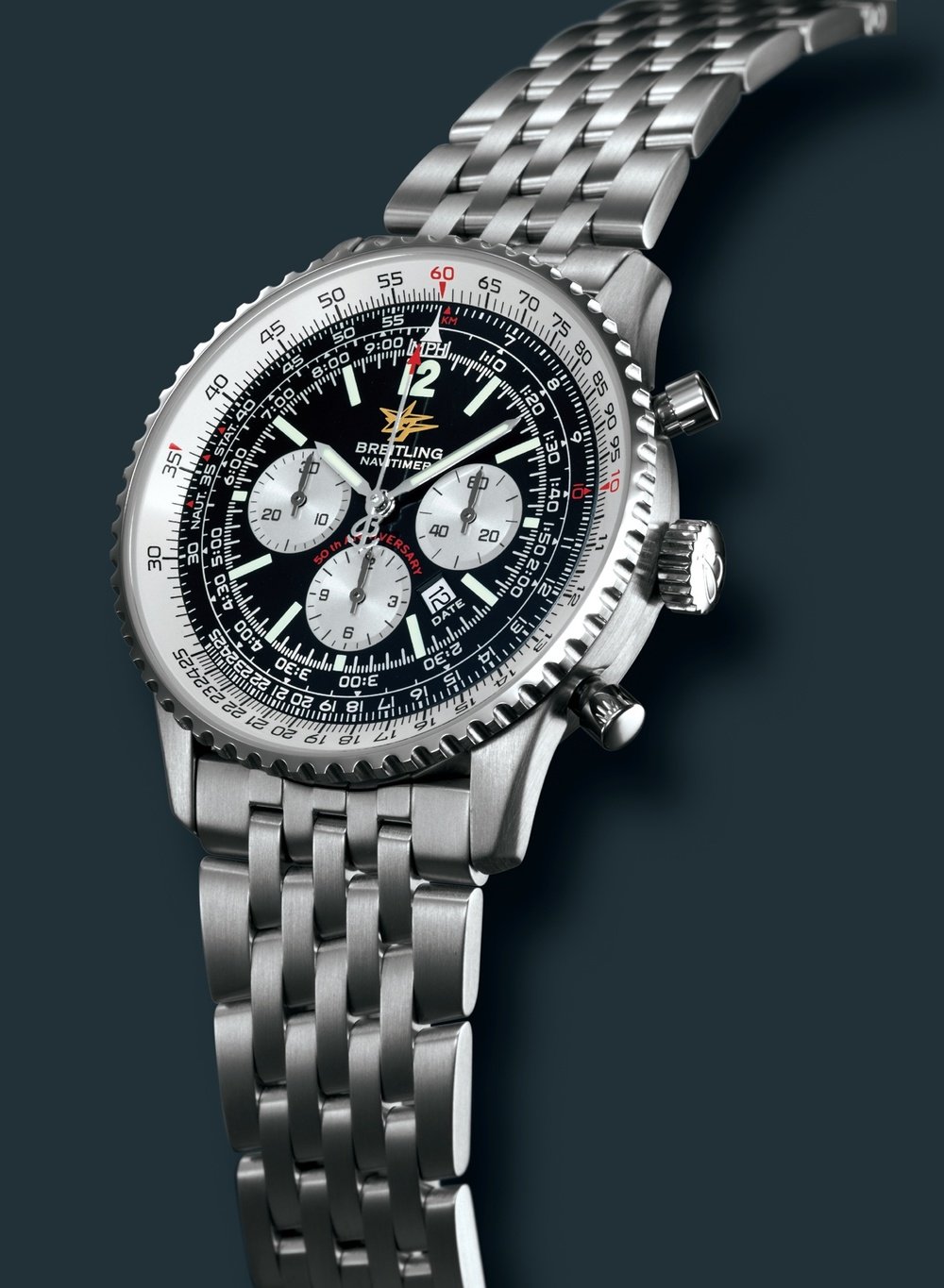 Launched in 1952, the Navitimer chronograph by Breitling quickly became a favorite among pilots and aviation enthusiasts. To celebrate the 50th anniversary of the brand’s emblematic model, Breitling has chosen to issue a special version of this horological classic, by now the oldest chronograph in uninterrupted production.