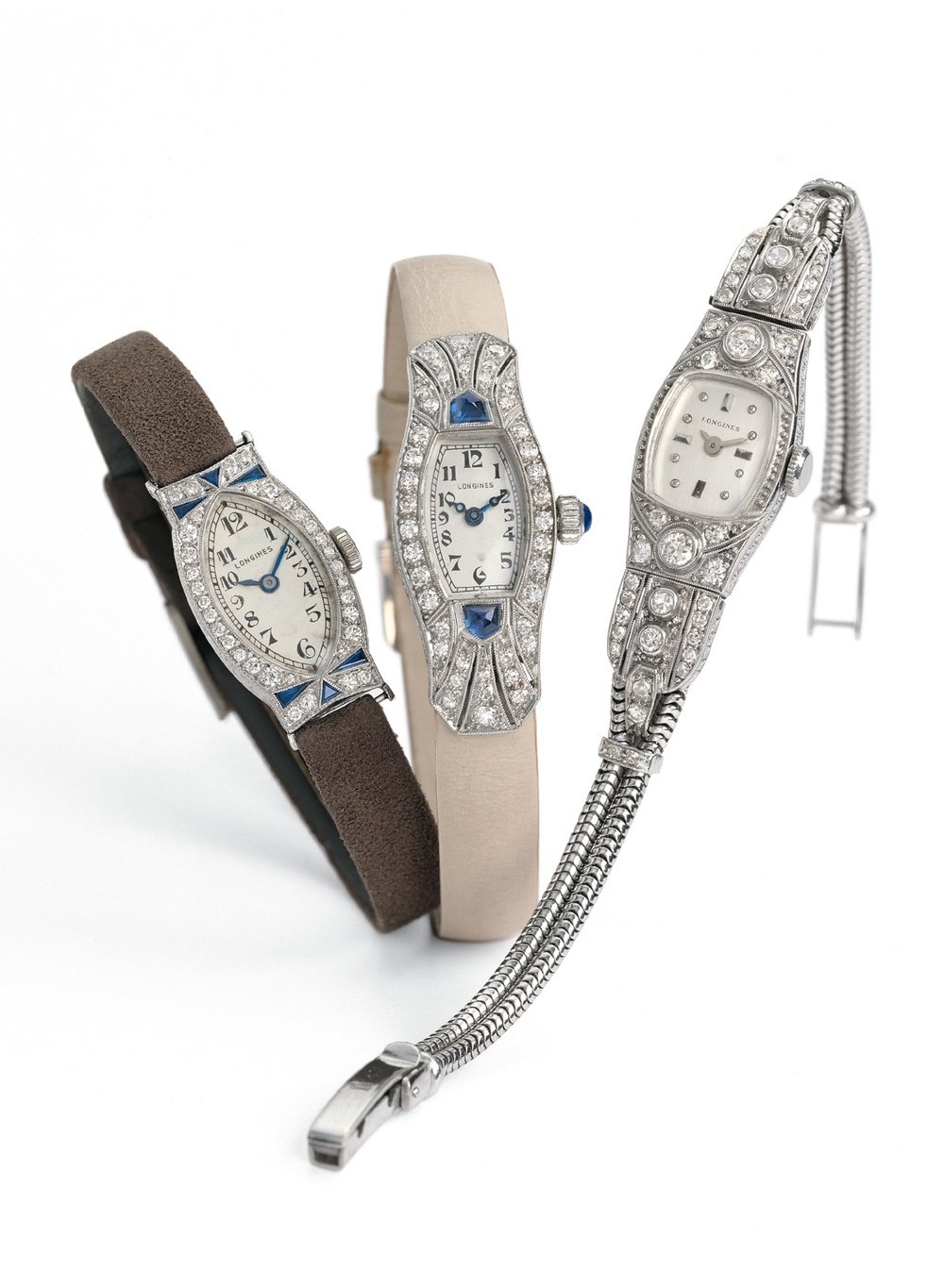 Longines is celebrating 170 years of elegance with the re-edition of three striking models from the Twenties. The cases are in 18-carat white gold, with the original shapes enhanced by the sparkle of diamonds and sapphires. The dials come with elegant painted Arabic numerals or round, bevelled hour markers. The bracelets are in leather or white gold with a jewellery fastening (depending on the model).