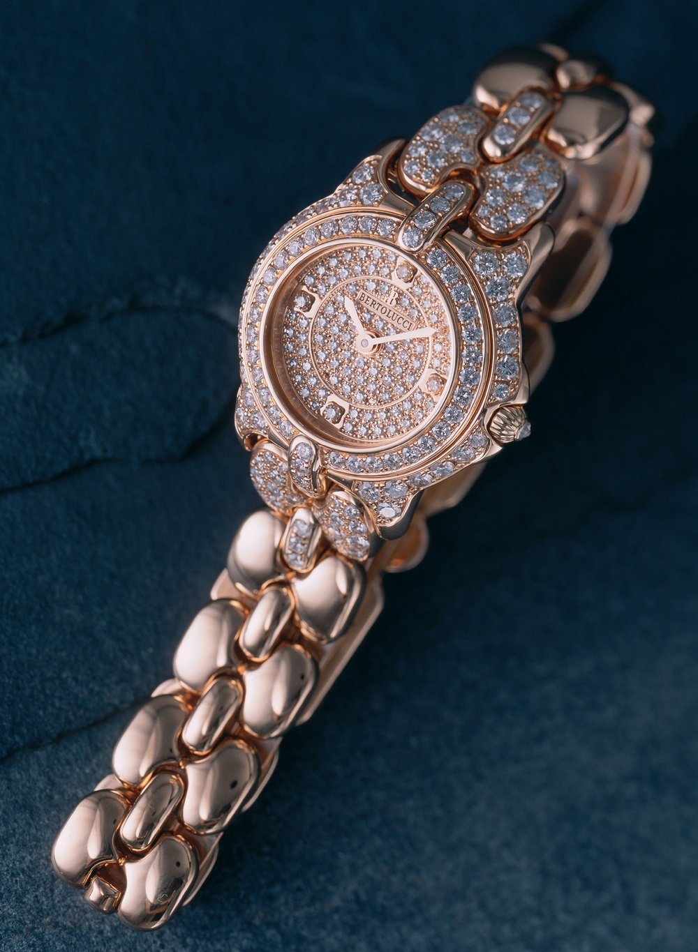 Vir is Bertolucci’s classic line, with the accent on Latin elegance. Having been the brand’s hallmark of success for ten years, the Vir is currently celebrating its renewal. And it has emerged as more feminine than ever before - the Mini Vir, gracious, dazzling and chic. The case and the links are set with 2.28 carats of diamonds, while the dial is paved with sparkling diamonds too. Something to make the most sensitive of women sparkle and quiver with refinement!