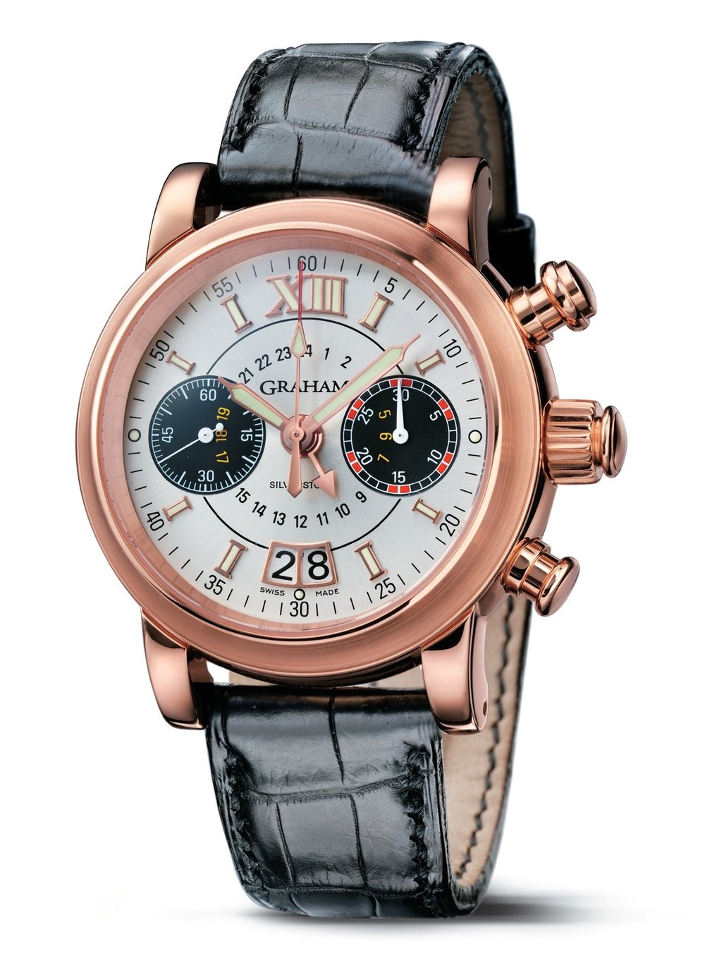 The Graham Silverstone Chronograph was originally designed for motor racing lovers. It is fitted with several extraordinary complications. An automatic winding chronograph with a fly-back function facilitates the measurement of successive short periods, such as lap times. It also enables the wearer to start a new time measurement when the line is crossed by simply pressing the push-piece located at the four o’clock position.