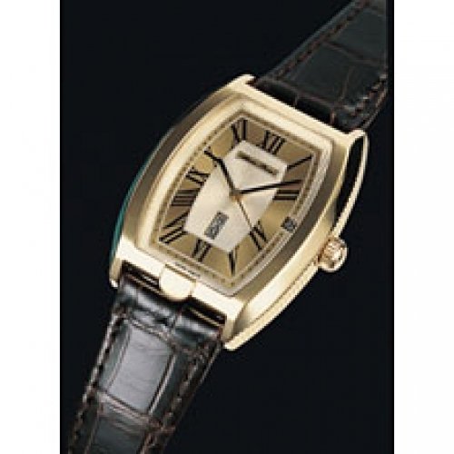 A beautiful movement and highly refined lines: Armin Strom once again displays his talents as a craftsman in a timepiece that will captivate connoisseurs. The barrel case stands out by virtue of its harmonious shapes, its play on volumes and its attention to detail. The dial, engine-turned by hand, displays the date and the day in two windows. The hand-engraved, manufactured movement is visible through the sapphire back. Bracelet in Louisiana leather with gold clasp.