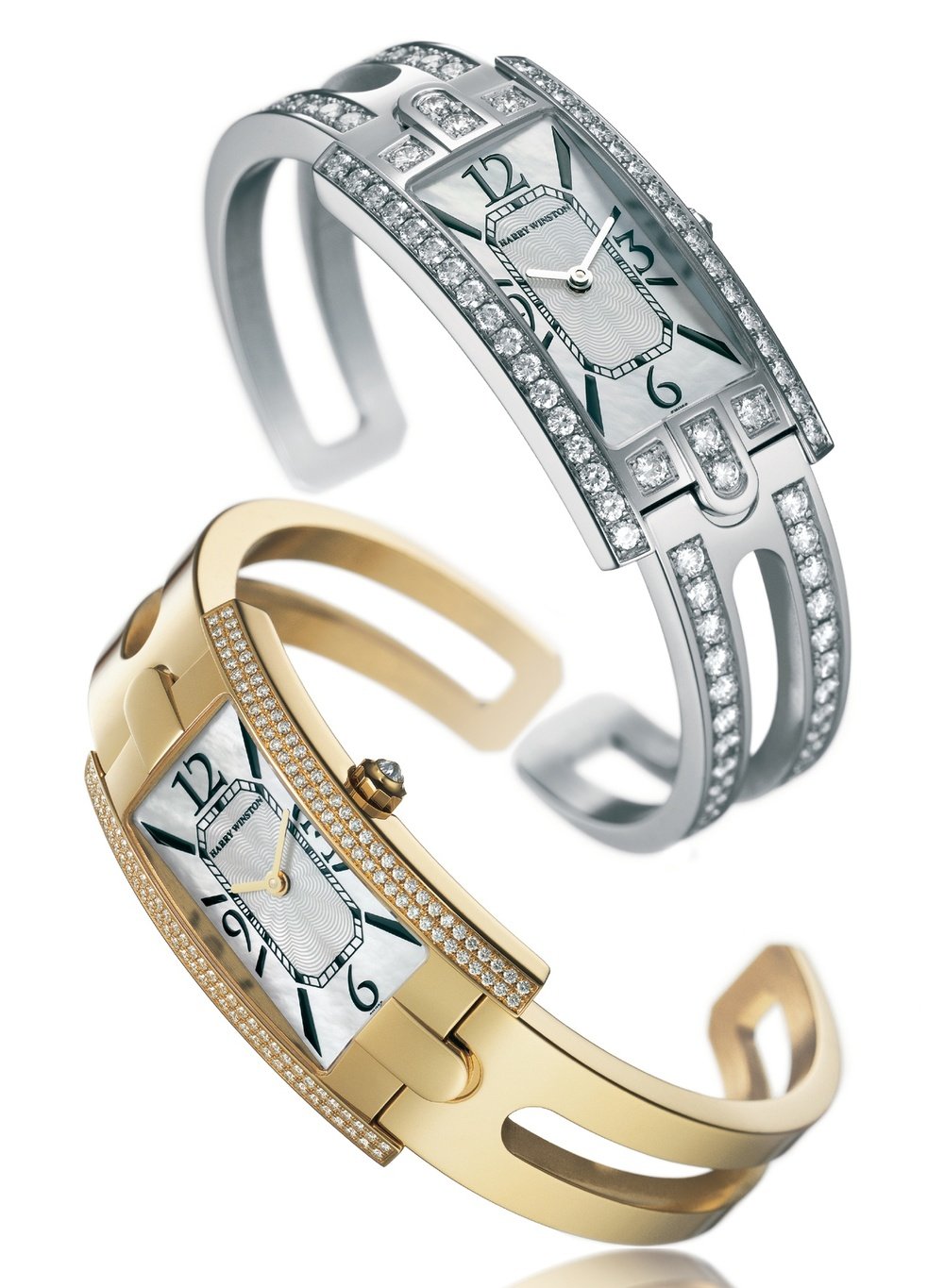 Harry Winston has reinterpreted one of his classics, the rectangular Avenue collection, in a creation with soft, feminine curves. The bold “Captive” bracelet, designed specially for this model, follows on from the elegant curvature of the case, making this watch into a true jewel. Available in white gold, set with 4.45 carats of white diamonds, or in yellow gold, the Avenue C bears sparkling witness to Harry Winston’s hundred years of experience.