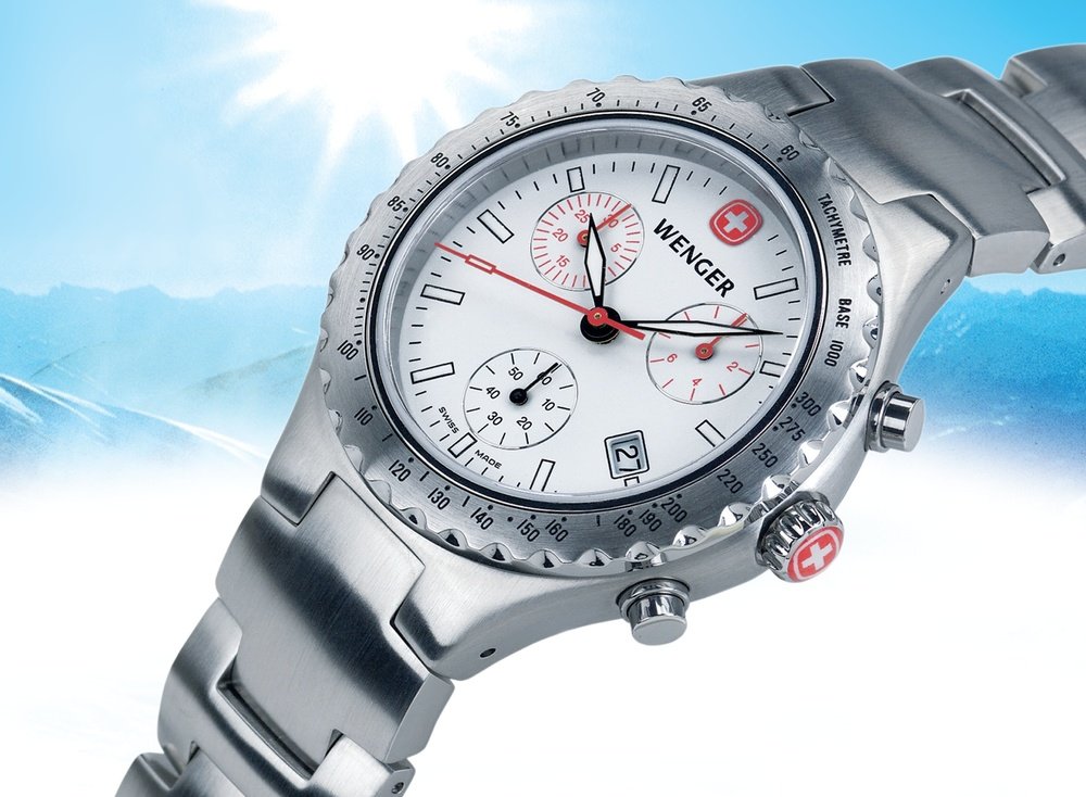 Elegance, robustness, functionality: living up to his demanding nature, this famous manufacturer of Swiss army knives has added a sports watch, either with or without a chronograph function, to his landmark collection. The dial, crown and bracelet bear the characteristic logo of the brand.