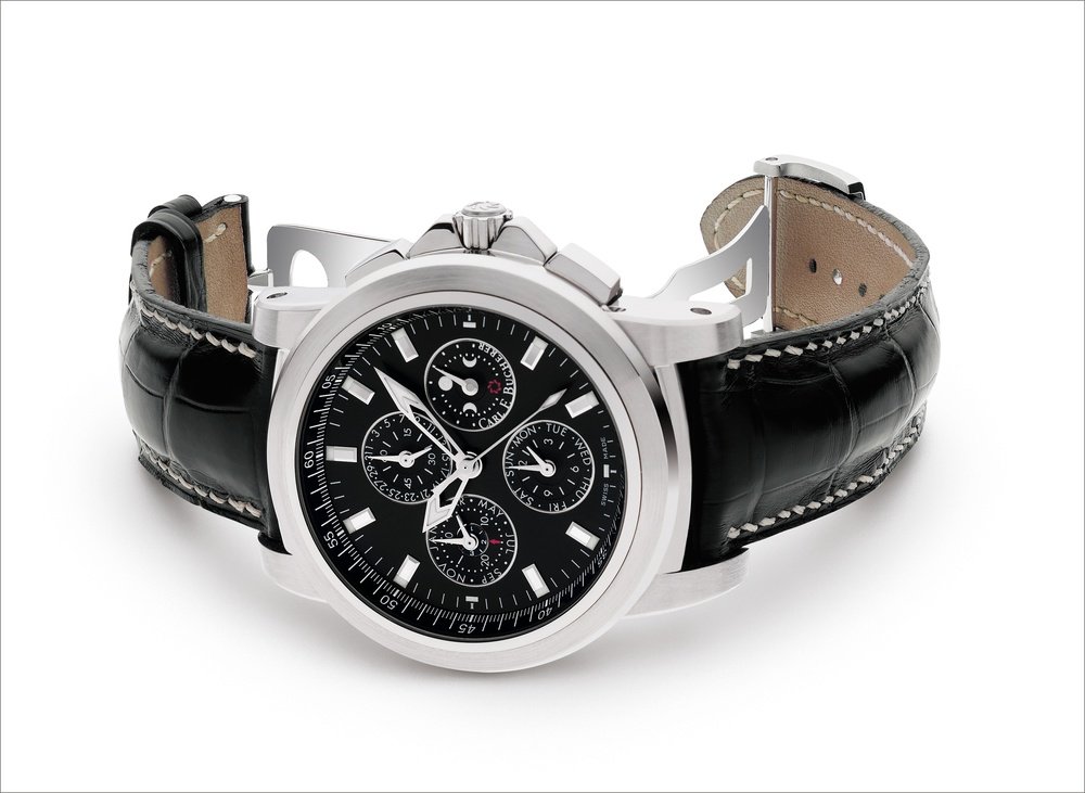Carl F. Bucherer has the connoisseurs of the grand tradition of watchmaking in mind with this exclusive, refined watch, which represents a veritable feat of mechanics housed in precious metals. The chronograph combines a perpetual calendar with the phases of the moon, and its movement is framed by a robust and carefully-styled architecture. Series limited to 125 numbered watches.