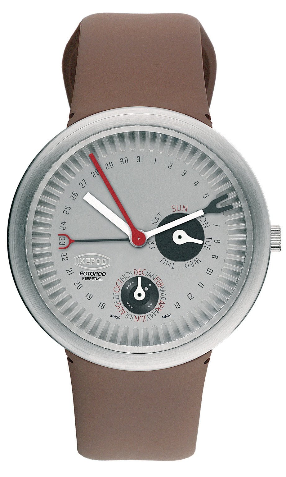 Adding a further member to the Hemipode family, the new Potoroo has now graced the Ikeopd collections with another sophisticated complication. The perpetual calendar unites the grand tradition of watchmaking with the famous avant-garde design of this brand. The cut-out dial displays the different elements of the date in highly original style while the deluxe workmanship of the movement can be admired through a bean-shaped opening in the back of the case. Limited edition of 99 watches.