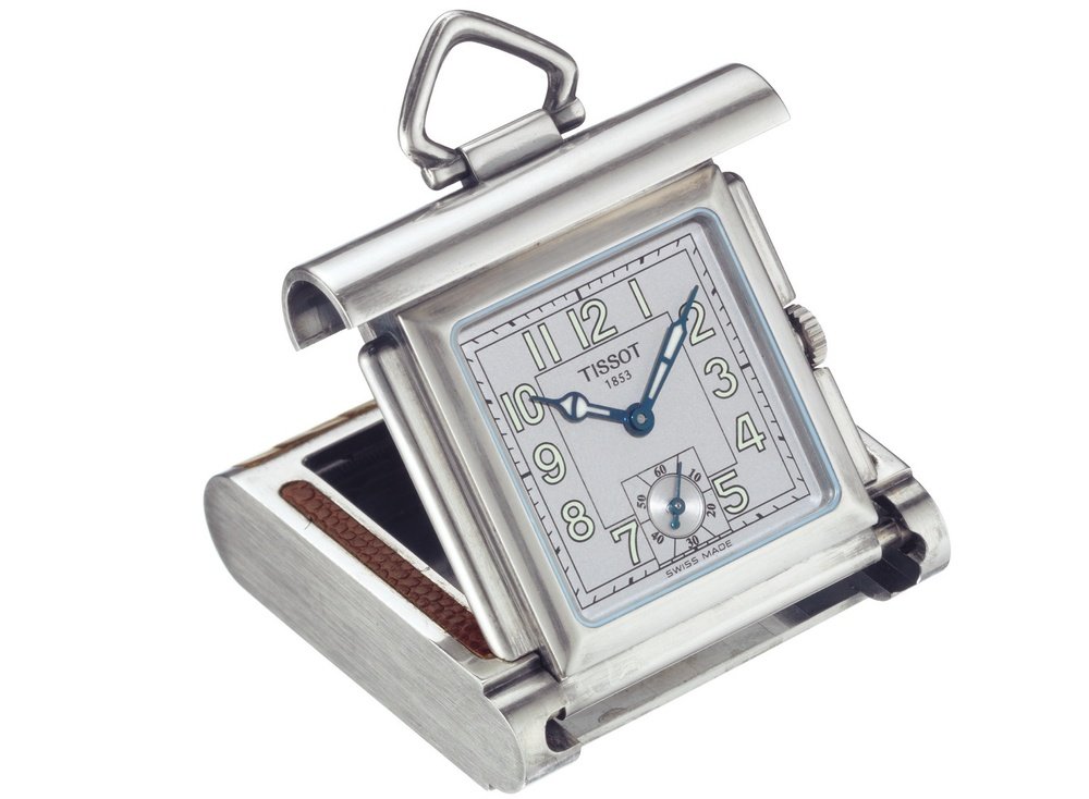 A replica of a watch created in 1932, this small, square pocket watch produced to celebrate the brand’s 150th anniversary, is housed in an elegant case covered in crocodile-texture leather. The case folds open ingeniously to make an enchanting miniature table clock. A magnificent testimony to Tissot’s expertise, this replica will delight those seeking an out-of-the-ordinary timepiece.