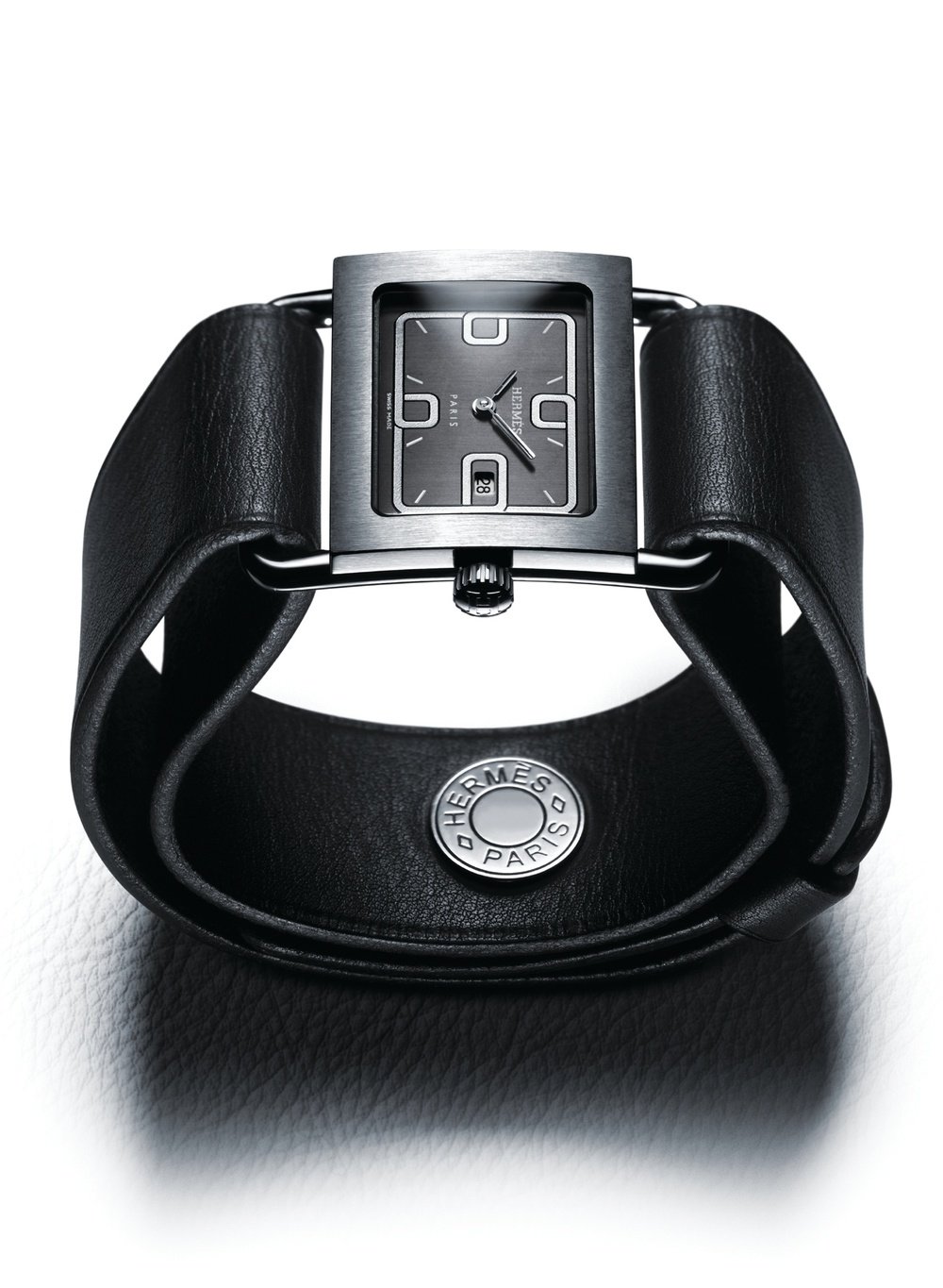 True to the company’s leather-working tradition, this new creation puts great emphasis on the bracelet. A strip of soft leather, it encircles the elegant case and is fixed in place by a patented system.