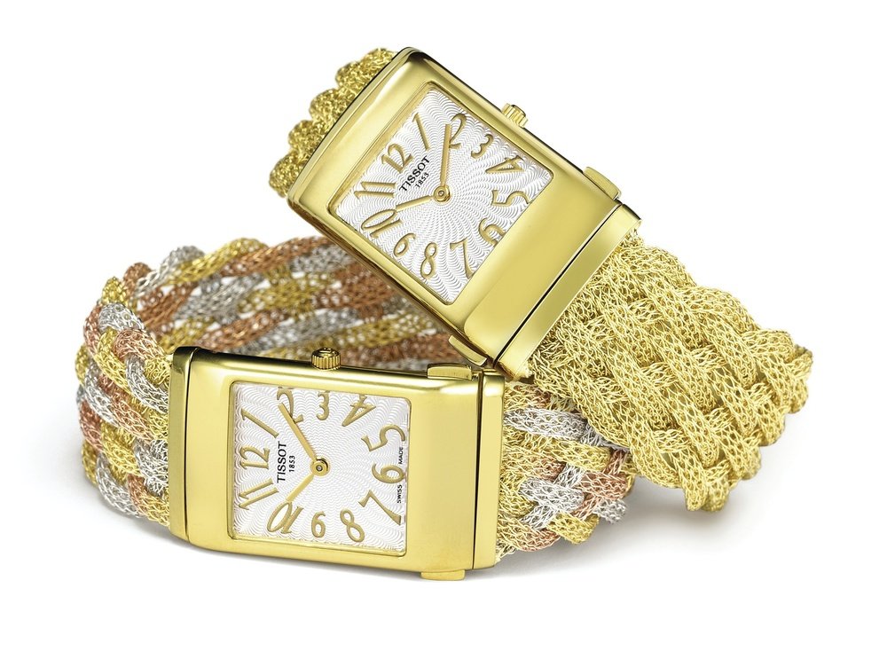 A new jewel-watch that marks an innovation from Tissot. Equipped with an exclusive, extensible bracelet, made up of finely-braided threads of gold, it provides a splendid combination of comfort, elegance and originality.