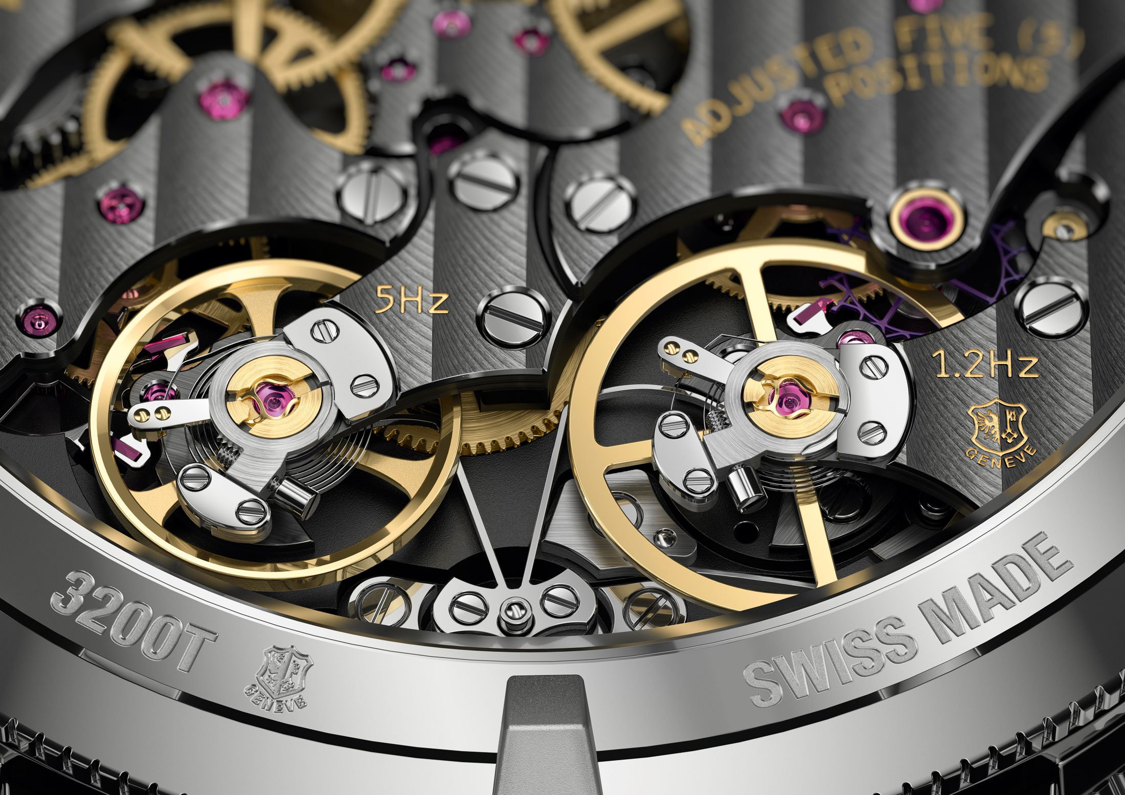 When you transition from one mode to another, there is no lag in the time display and calendar indications, thanks to an instantaneous switching system that stops one oscillator at the exact instant that the other starts, an operation that takes a fraction of a second. At the heart of this highly innovative system is a differential that allows the hands to draw variable information from two gear trains for one reading of the time, whatever the selected mode. A second differential, mounted on the barrel, applies a suitable amount of torque to the Standby balance, the very fine and ultrasensitive hairspring of which (its section much finer than that of a human hair) was specially designed for this very slow beat. Lastly, two supplementary differentials provide the information specific to the single hand that indicates one of the two power reserves.