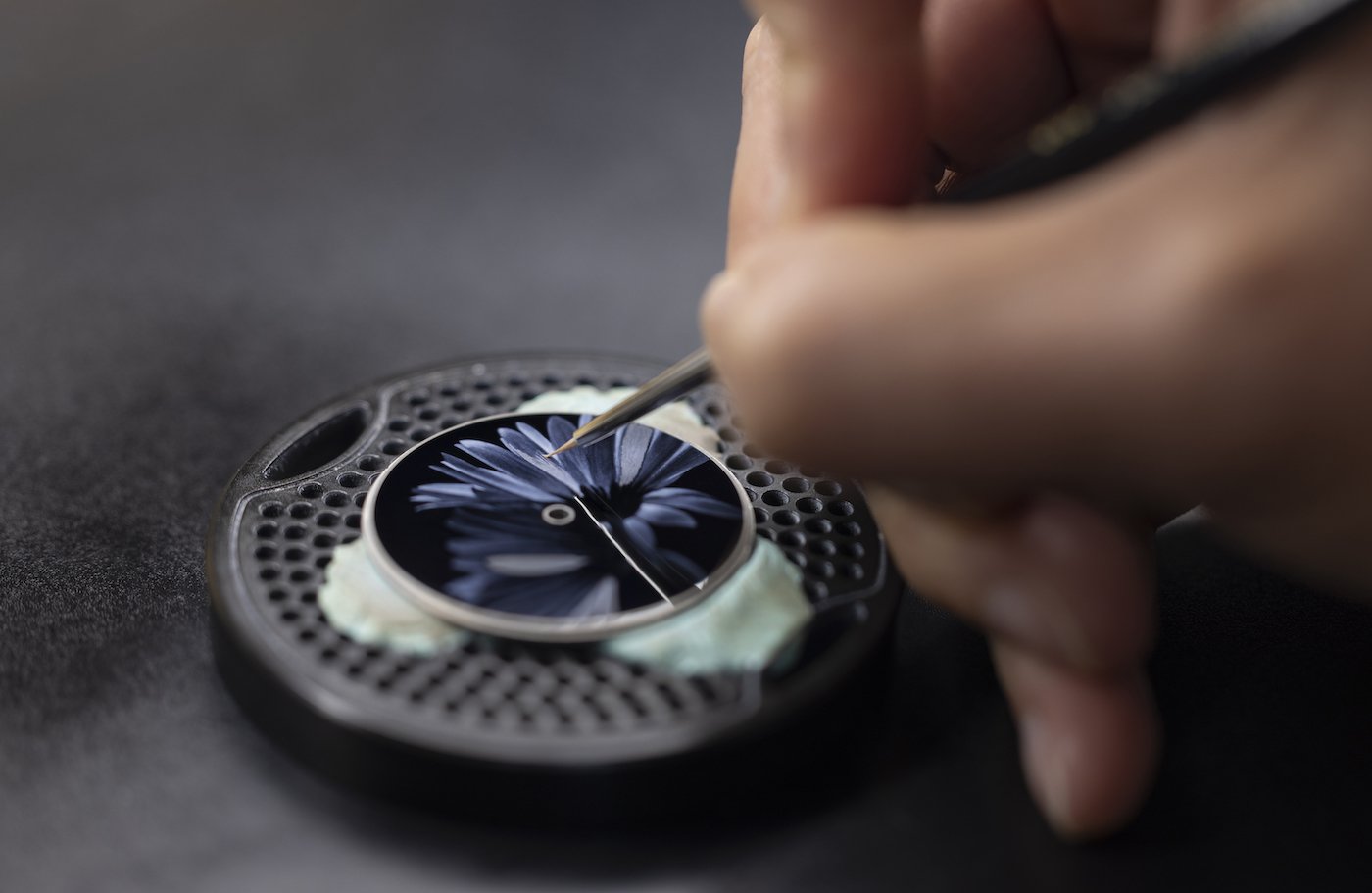 “The idea was to showcase and combine all the wonderful métiers d’art we have at the Atelier,” Dominique Vaucher explains. “Six years ago we hired Emma Bertrand, a designer who had just graduated from Geneva University of Art and Design (HEAD). For the first TAOS watches, we asked her to imagine designs inspired by fireworks, radiance and euphoria. We wanted certain watches to be unisex and others to be more feminine, and these patterns lend themselves to that.”