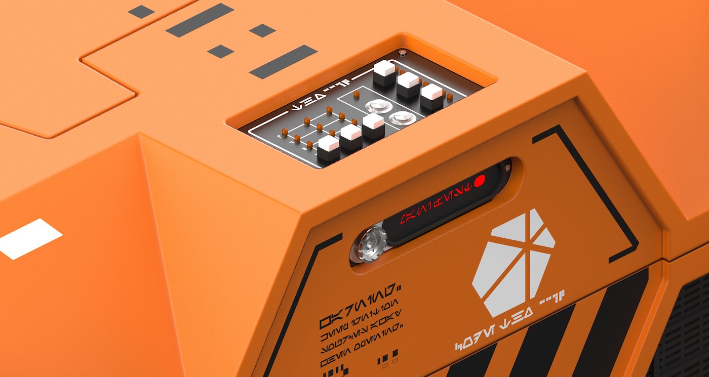 The Death Star Tourbillon watch, along with its straps and kyber crystal, are protected inside a faithful reproduction of the orange containers used by the Empire to secure its kyber crystal shipments. Each crate is a genuine piece of functional art, composed of more than 700 elements, measuring 1.2 metres in length(!). Kross Studio relied on the know-how of Swiss craftsmen to design the ten wood and aluminium containers.