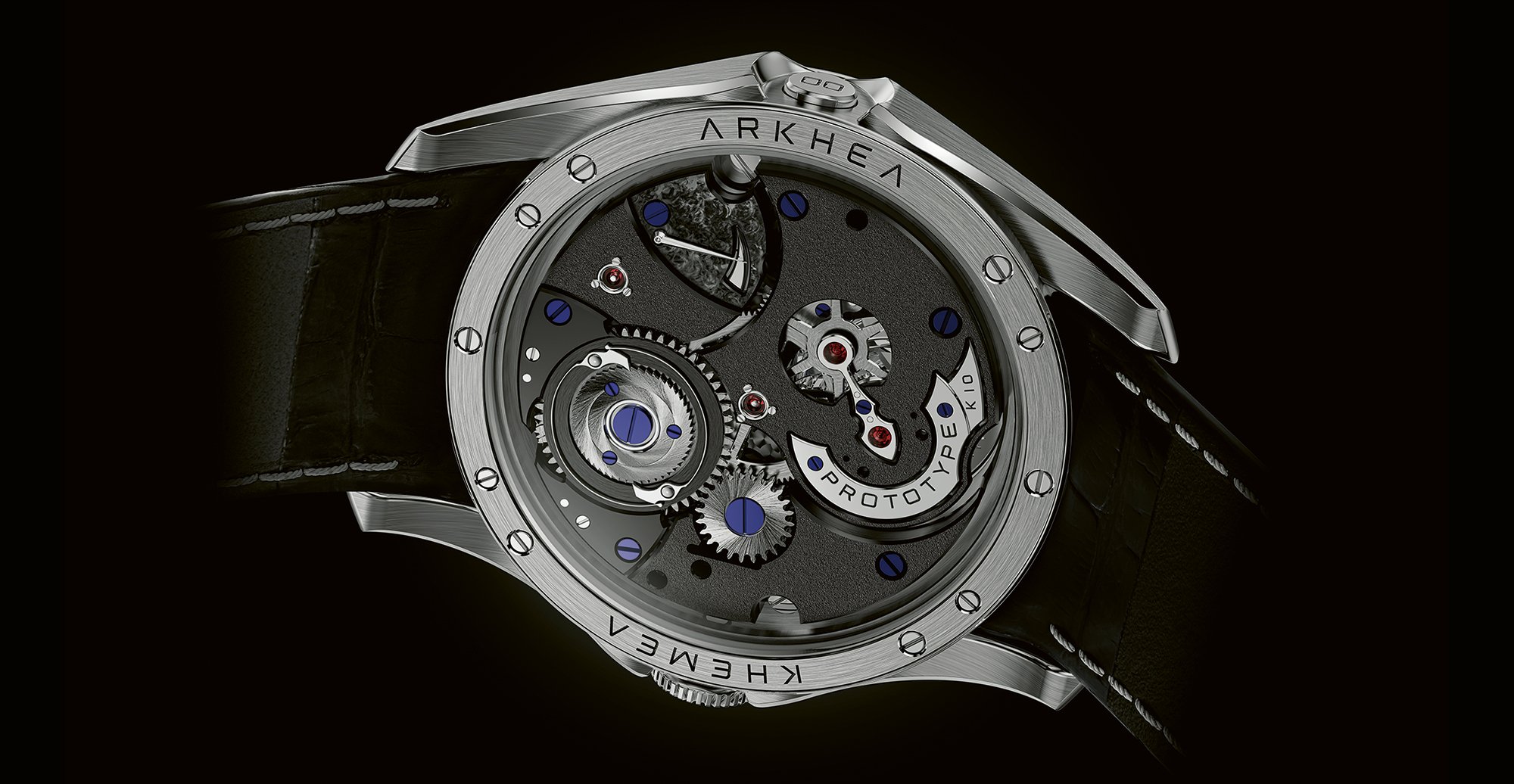 - The Arkhea watch. 40 mm steel case. Movement K.10. Moon phases, date, power reserve, tourbillon. Balance frequency 21,600 vph/3Hz. Manual winding. Power reserve 100 hours.
