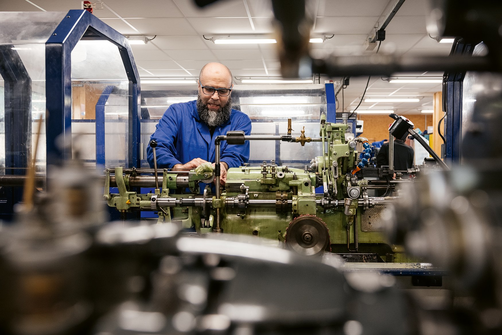 The region’s past and its horological “DNA” bring an additional dimension to teaching at the school. Traditional hand tools, the kind the students’ grandfathers would have kept on their workbenches, sit alongside the latest CNC machines, laser machines and a ceramic kiln. The mathematical mysteries of construction unfold in three dimensions on a computer screen, across from a young man hand-chamfering a bridge. Next door, in the machining workshop, students are using Tornos lathes, those indefatigable masterworks of twentieth-century precision mechanics.