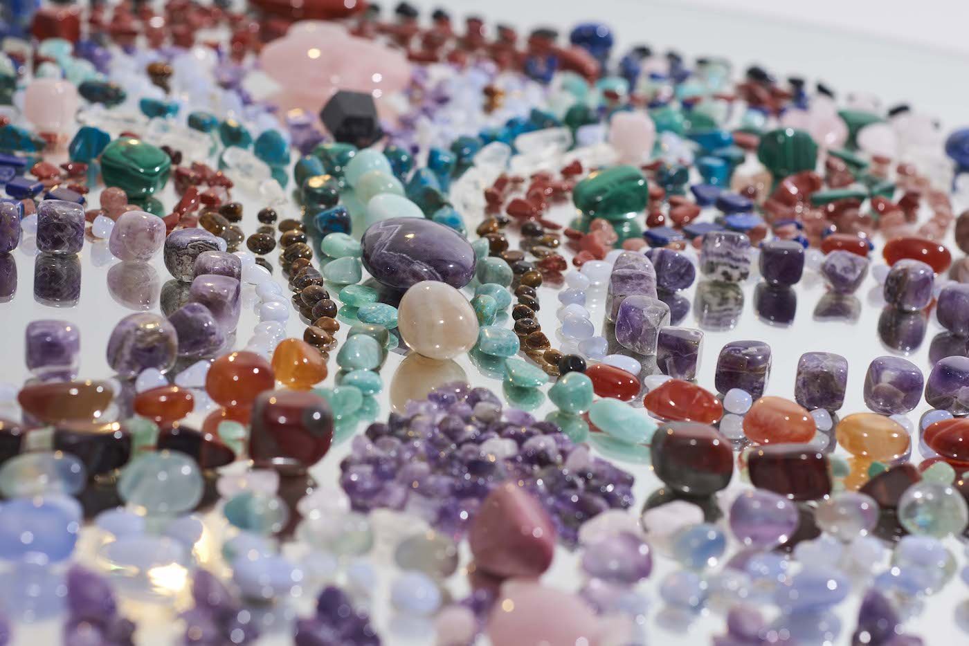 The third object is a mirror embellished with a skull, inspired by Mexican calaveras and interpreted with 1,277 fine stones, “each of which has a symbolic value and a virtue.” The mirror is a collaboration with the Geneva-based interior designer and designer Aline Erbeia, a long-time friend of Pierre Salanitro. Each year he aims to present ten new mirrors, inspired by different cultures.