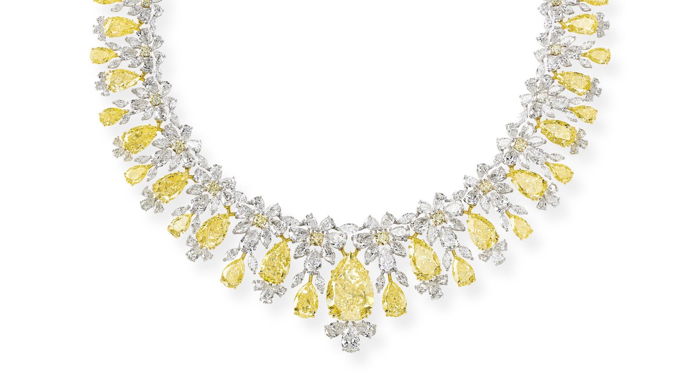 There are two particularly spectacular necklaces, one with heart-shaped emeralds and another with yellow diamonds. To what extent did the stones influence the design?