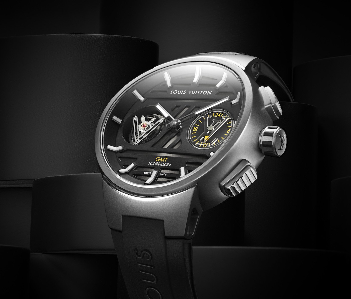 - The Tambour Curve GMT Flying Tourbillon reinterprets the curves of the case of Louis Vuitton’s founding Tambour watch, launched in 2002, whose shapes were inspired by the architecture of the most stunning international airport terminals.
