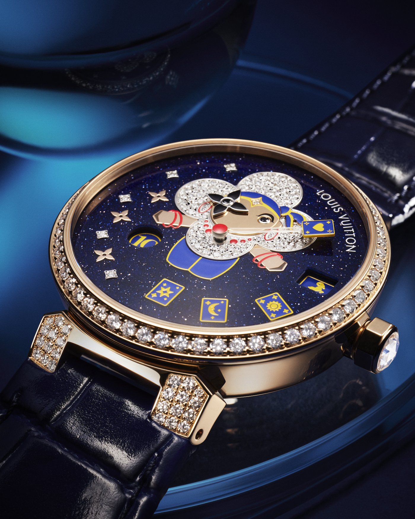 On a completely different note, there is also the Tambour Slim Vivienne Jumping Hours. “Vivienne” is the name of Louis Vuitton’s mischievous and mysterious mascot that made its first appearance in the brand’s creative universe in 2017.