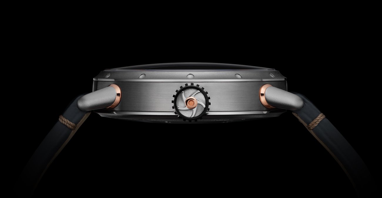 The result is an object naturally finding its way through time, embodying a subtle encounter between retro and futuristic worlds". Playing with curves, textures and depth, the timepieces thus created feature several distinctive details: a complex dial construction with a central opening revealing the hours wheel; the date highlighted by a magnifying glass effect window at 6 o’clock; a three-part crown bearing the brand’s tourbillon motif; and curved lugs with no visible sharp angles, microblasted with a touch of pink gold to heighten the contrast.