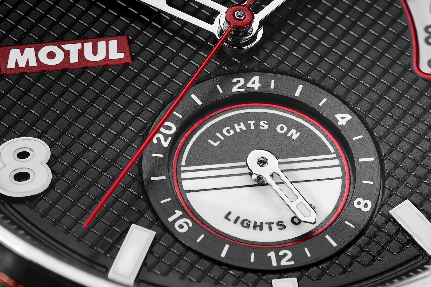 The new Serie-P Pista 24 Motul Edition is inspired by the world of automotive endurance. The patterns in the centre of the dial are reminiscent of racing car radiator grilles, while the chapter ring brings to mind a brake disc. Above all, this collaboration with Motul opens the doors of motor racing circuits to Depancel. “With Motul, we are present at several racing events, including the Dakar Rally, and we are going to launch models dedicated to each of these races,” Clément Meynier confirms.