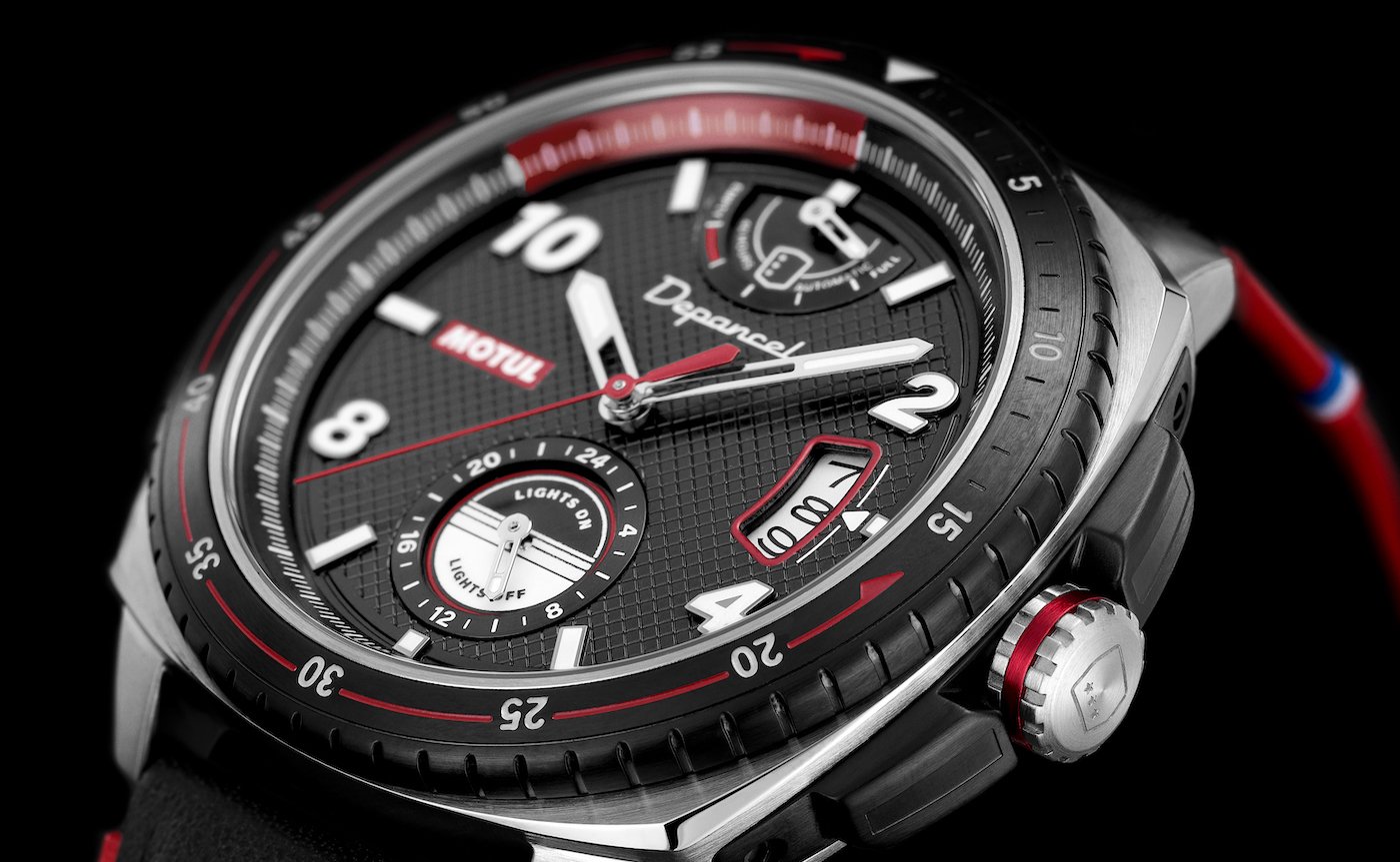 In 2020, after a community vote, Depancel launched its first Swiss made collection, equipped with movements provided by manufacturer STP. The Serie-P is available at just over 1,000 euros. The newest and most ambitious model in the collection has just been launched for pre-order, created in collaboration with Motul, the famous French company specialising in engine lubricants, a familiar presence on car and motorcycle racing circuits throughout the world.