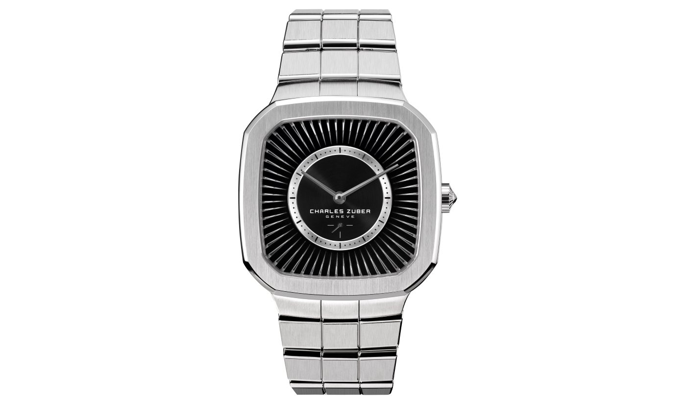 Created by the excellent designer Eric Giroud, Perfos, with its three-part case, no straight lines, flat bezel and complex dial with 60 stylised, bevelled rays acting as markers, has the declared ambition of “offering an alternative to four or five shapes of model that have been stuck in a loop for 40 or 50 years.” Proprietary automatic movement with a micro-rotor that follows the shape of the case.