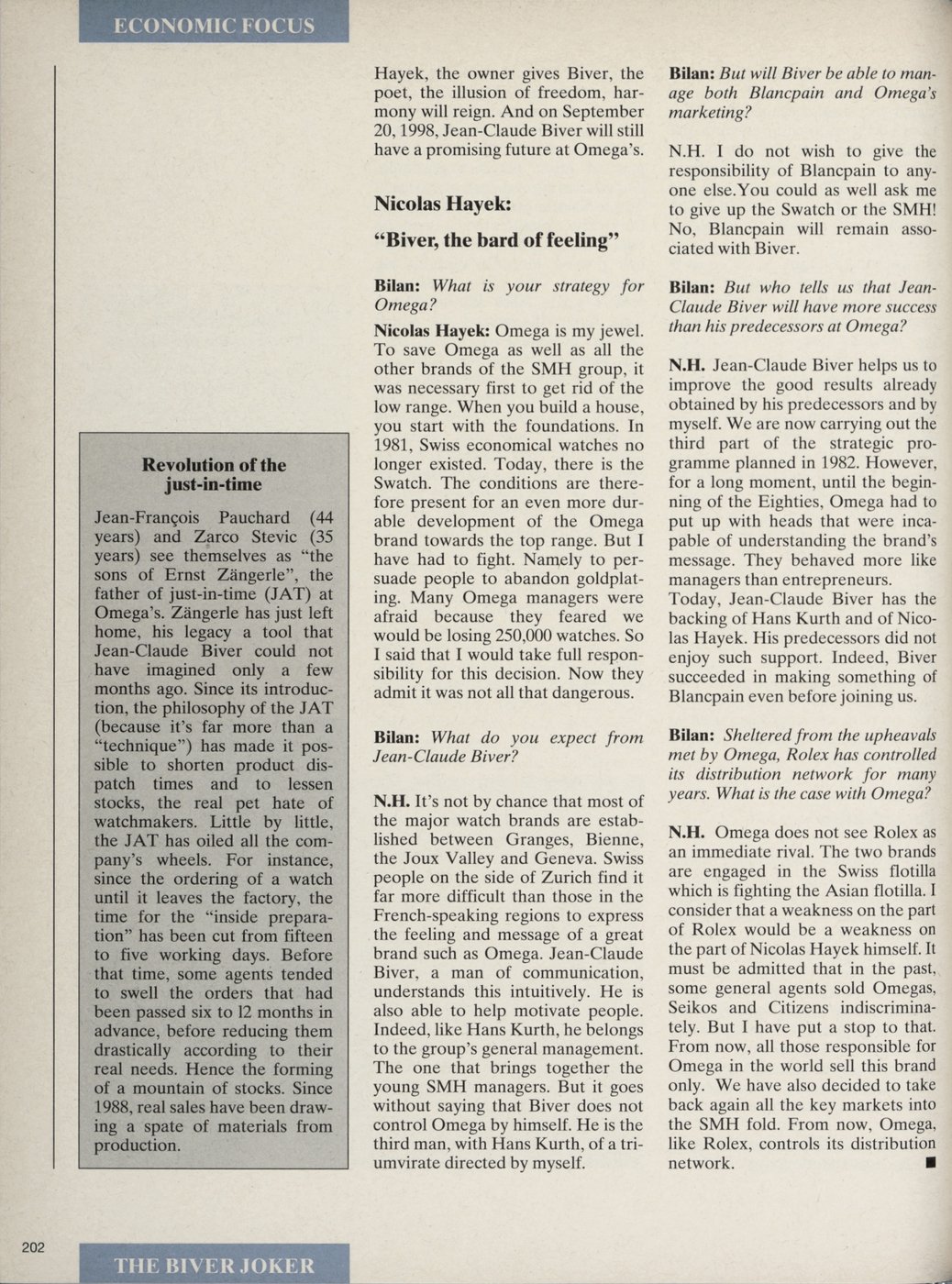 But three weeks later I was already calling Hayek. I was depressed, I’d lost my love, I’d lost my passion. I asked him to hire me again. Which he did, but he warned me: “You’re going to be frustrated: I’m giving you a challenge, to get Omega back on its feet again.”