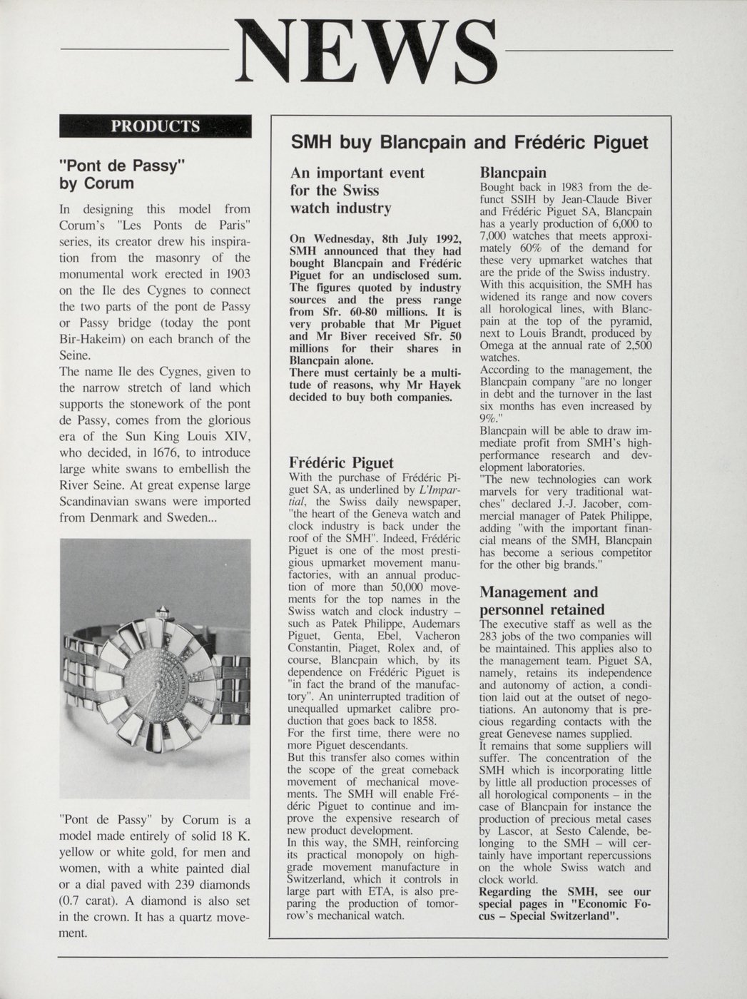 - Sale of Blancpain to the SMH Group. Europa Star 4/1992