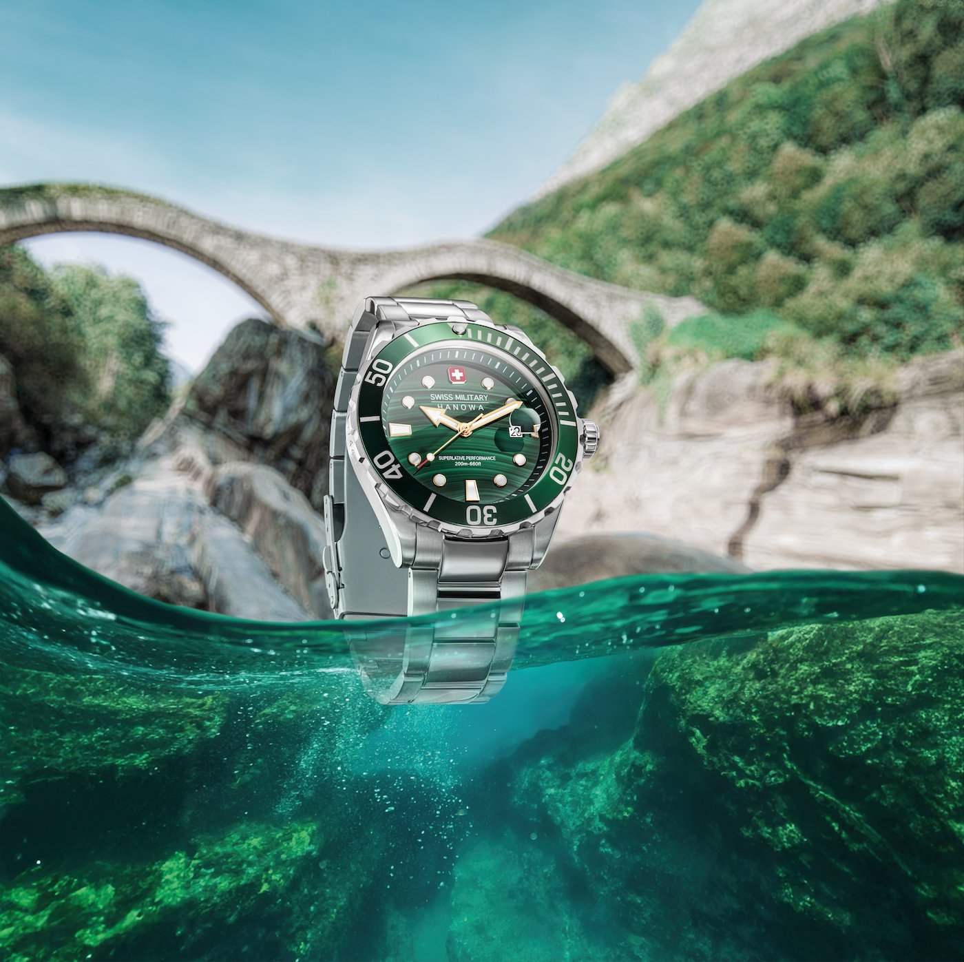 - The dial of the Offshore Diver Green Water captures the emerald colours of the Verzasca river.