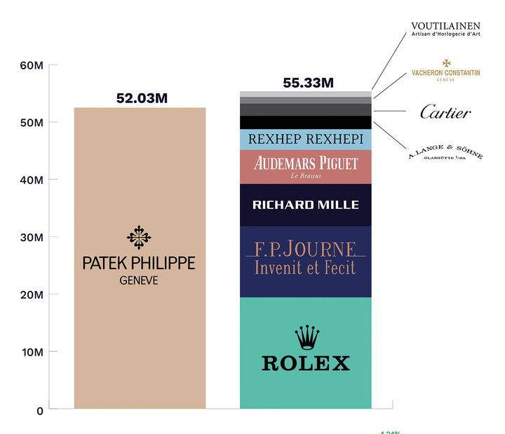 The performance of vintage, modern, neo-vintage and independent brands in 2024 highlighted distinct market trends. Vintage watches achieved $41.7 million in total sales with a 15.12% unsold rate, showing a slight decline but still strong interest. Modern watches generated $34.7 million in sales with a 12.79% unsold rate, maintaining steady demand. Neo vintage watches contributed $19.7 million in sales with a 14.29% unsold rate, indicating stable collector interest. Independent brands, led by F.P. Journe, demonstrated robust growth, with significant sales increases reflecting their rising prominence.