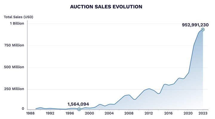he watch auction market has grown dramatically in the past 35 years. Back in 1989, only about 400 watches were auctioned each year. Today, that number has soared to over 50,000. In terms of sales, the increase is just as impressive: from $10 million in 1989 to nearly $1 billion in 2023, with expectations that we’ll surpass this in 2024.