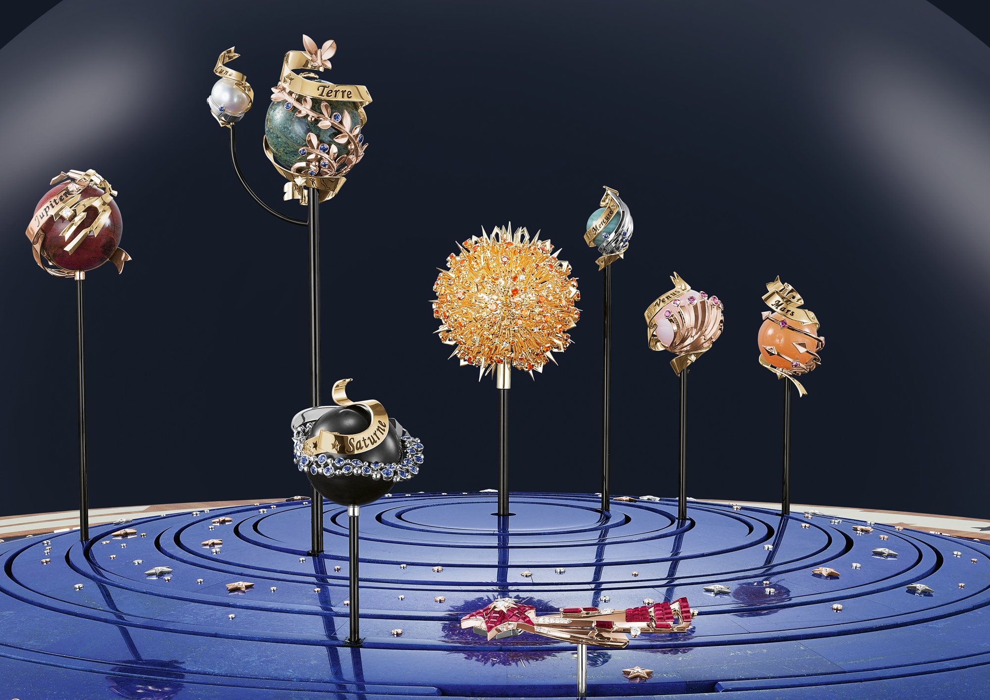 - The new Planétarium automaton by Van Cleef & Arpels presents the Sun and the planets in its system visible from the Earth. Driven by complex mechanical movement, each celestial body moves at its actual speed of rotation, performing a complete orbit in 88 days for Mercury, 224 days for Venus, 365 days for Earth, 687 days for Mars, 11.86 years for Jupiter and 29.5 years for Saturn.