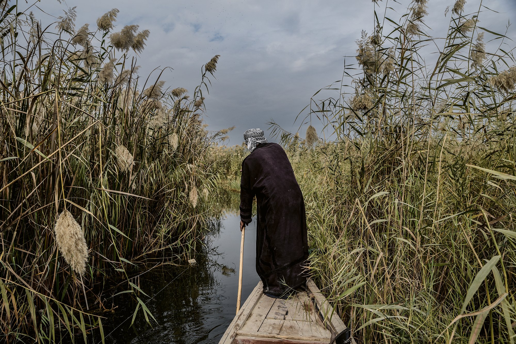 And yet, at the same time, time seems to pass more quickly here than elsewhere. This place outside of time is affected more urgently and more deeply by the changing climate. It’s as if Mesopotamia, the land of a legendary past, also gives us a glimpse of the future. And it’s a terrifying, apocalyptic vision of the planet’s future, in microcosm. Temperatures rising above 50°C in the summer, dried-up rivers and marshes, mass exodus of people to the cities, cattle poisoned by brackish water. “When will the water return?” ask the fishermen of the Euphrates, their hands reaching out to the sky as they pull in their empty nets. Inshallah, they say. If God wills it. Boukra inshallah, in Arabic, means “tomorrow, if God wills it.” But it also means never.