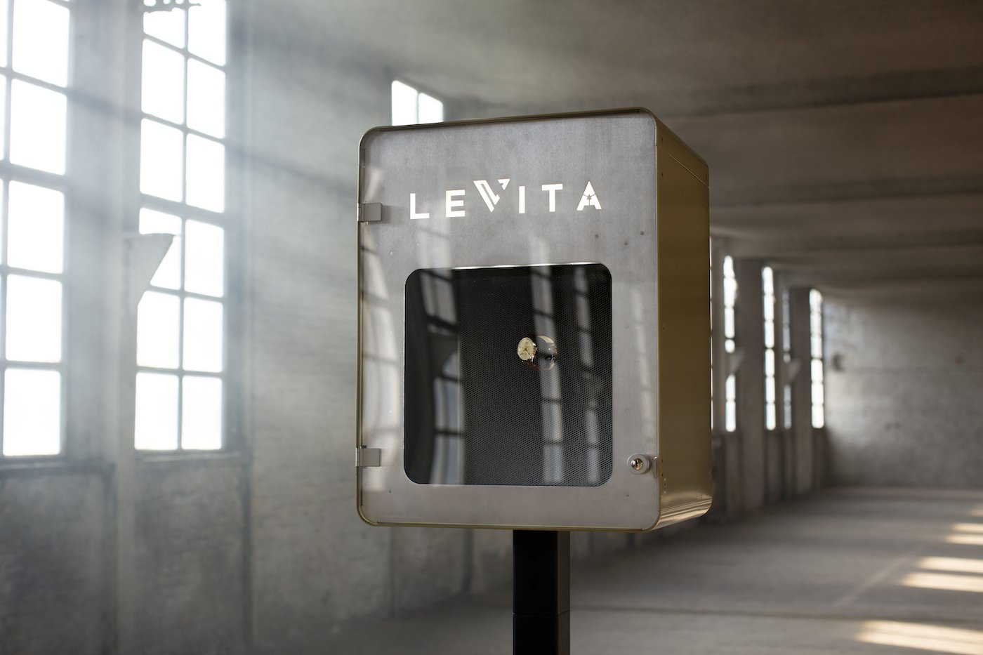 With Levita, the two magicians set about developing a unique technology. This enables small objects to be levitated and then float and rotate inside an otherwise empty showcase, 24 hours a day, seven days a week.