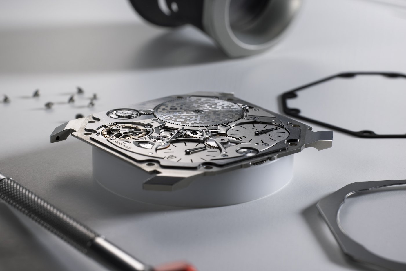 Bulgari worked hand in hand with Concepto to create the Octo Finissimo Ultra. “The original brief was to achieve a thickness of less than 2 mm, while being able to wind the watch and set the time manually, without having to use a tool,” explains Philippe Saltarski, Development & Quality Assurance Director. “And above all to produce a timepiece that can actually be worn, rather than a concept watch.”