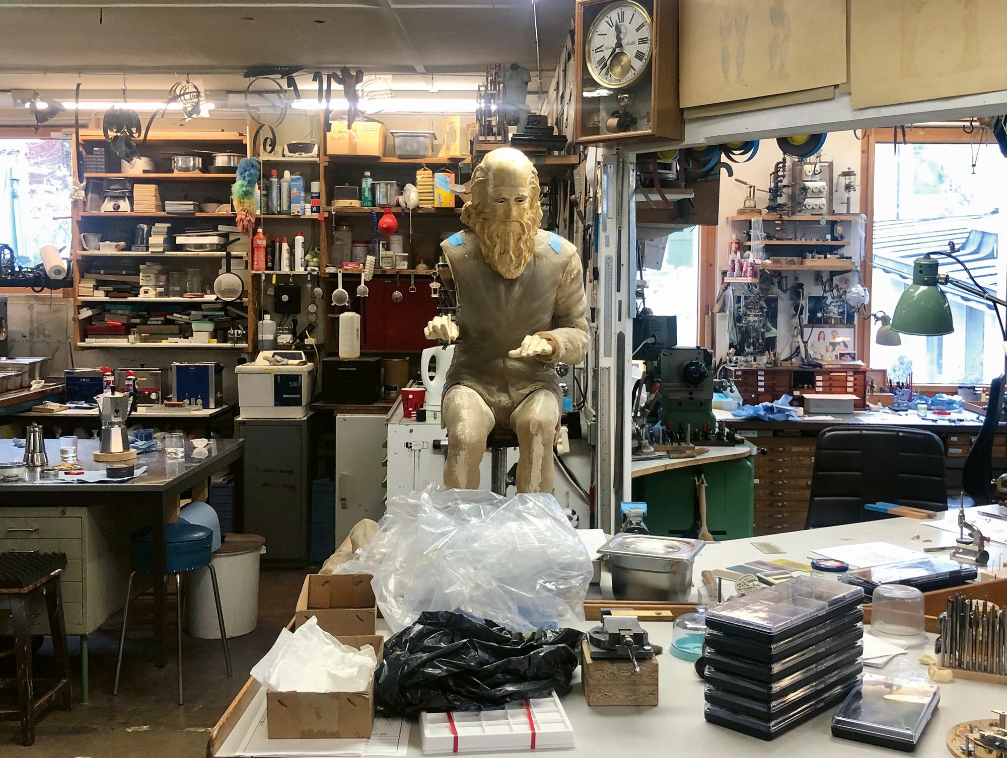 Stepping through the porch into François Junod’s workshop, the visitor is greeted with such genuine warmth by the artist and his team, one almost forgets the privilege it is to share what is a form of intimacy. Its contents – at first glance a bewildering array of objects – defy classification: mid-century machine-tools in perfect working order; theatre props; precision mechanisms; an area set aside for casting sculptures. François Junod himself struggles to define his profession. “Automater?” he hazards, quickly adding that it’s “a made-up word” and that what he does follows on from “the great French automaton makers who were active from the late eighteenth century into the 1960s.”