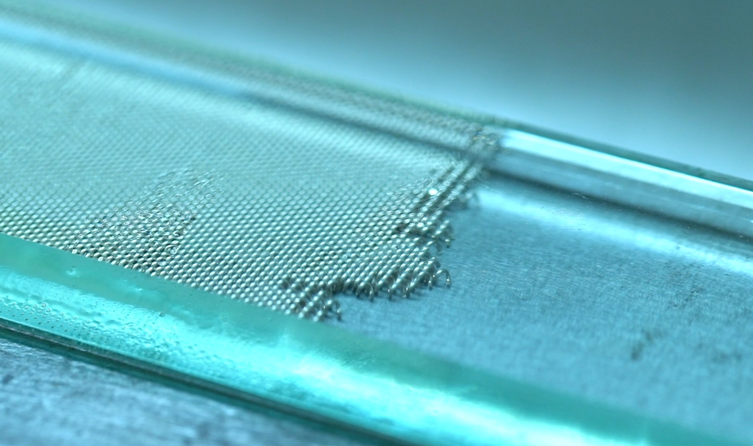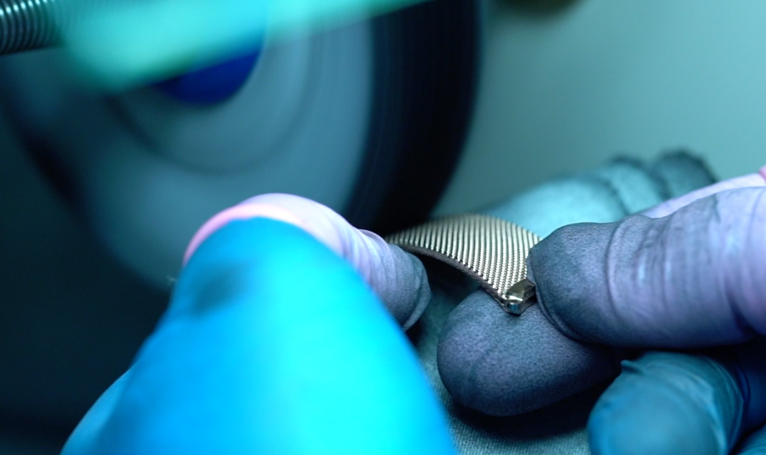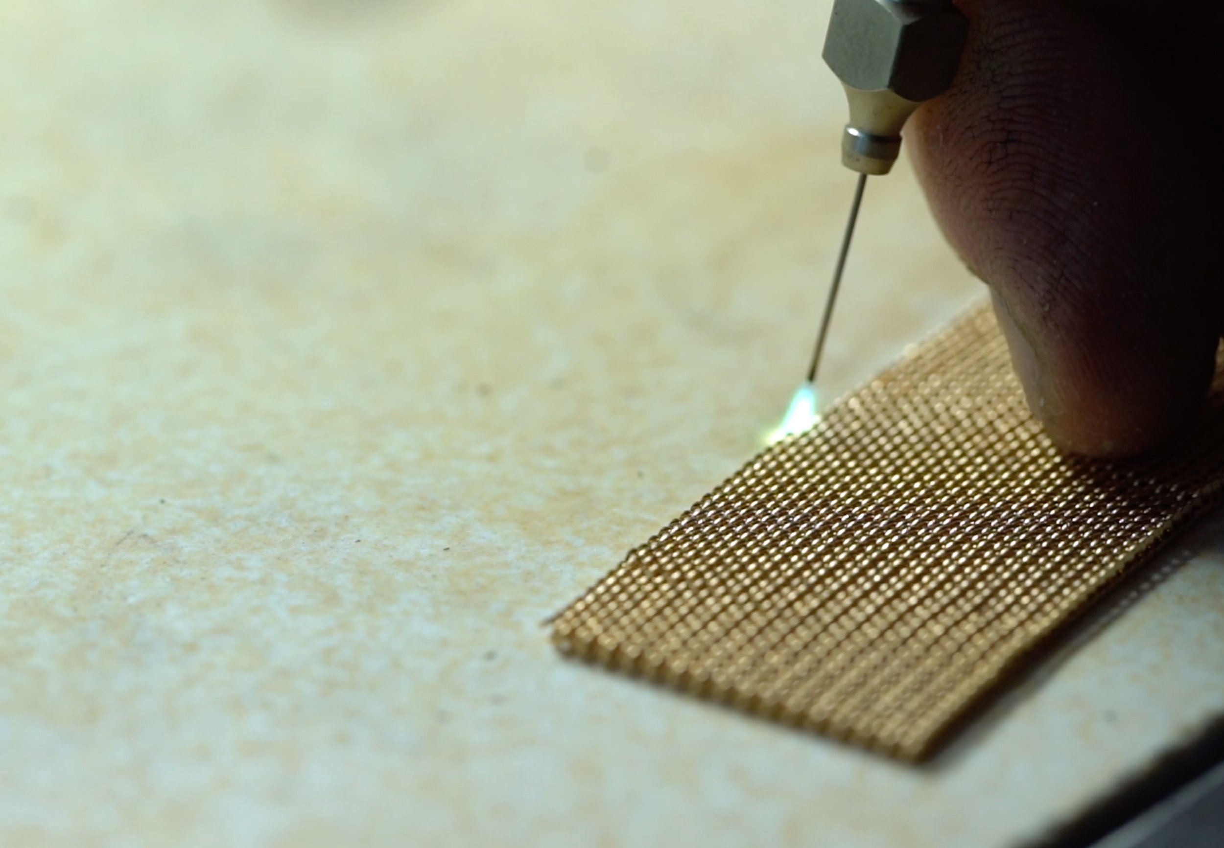 It all starts from a gold thread, which is transformed into spirals that are intertwined with each other. The result: a resistant mesh, like metal, is created - but it is as flexible as tissue.