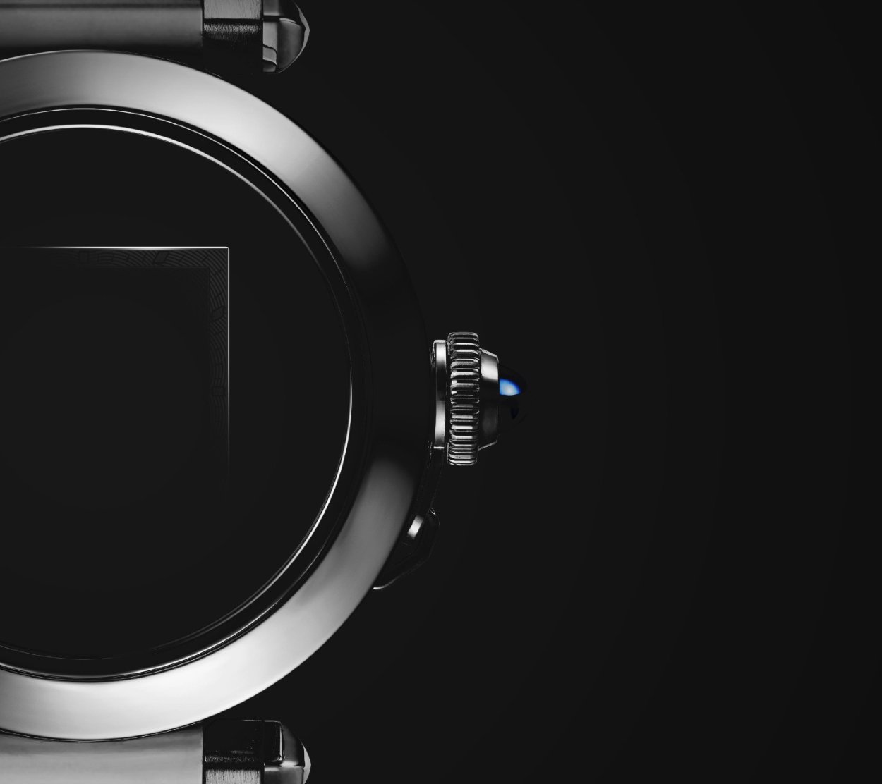 One of the key design elements of the Pasha de Cartier watch is the chained crown. In its new version, Cartier added increased refinement, equipping the winding crown, hidden under the fluted crown cover, with a blue spinel or sapphire. This division, and duplication, of blues enhances the ergonomics of the winding crown and the preciousness of the watch.