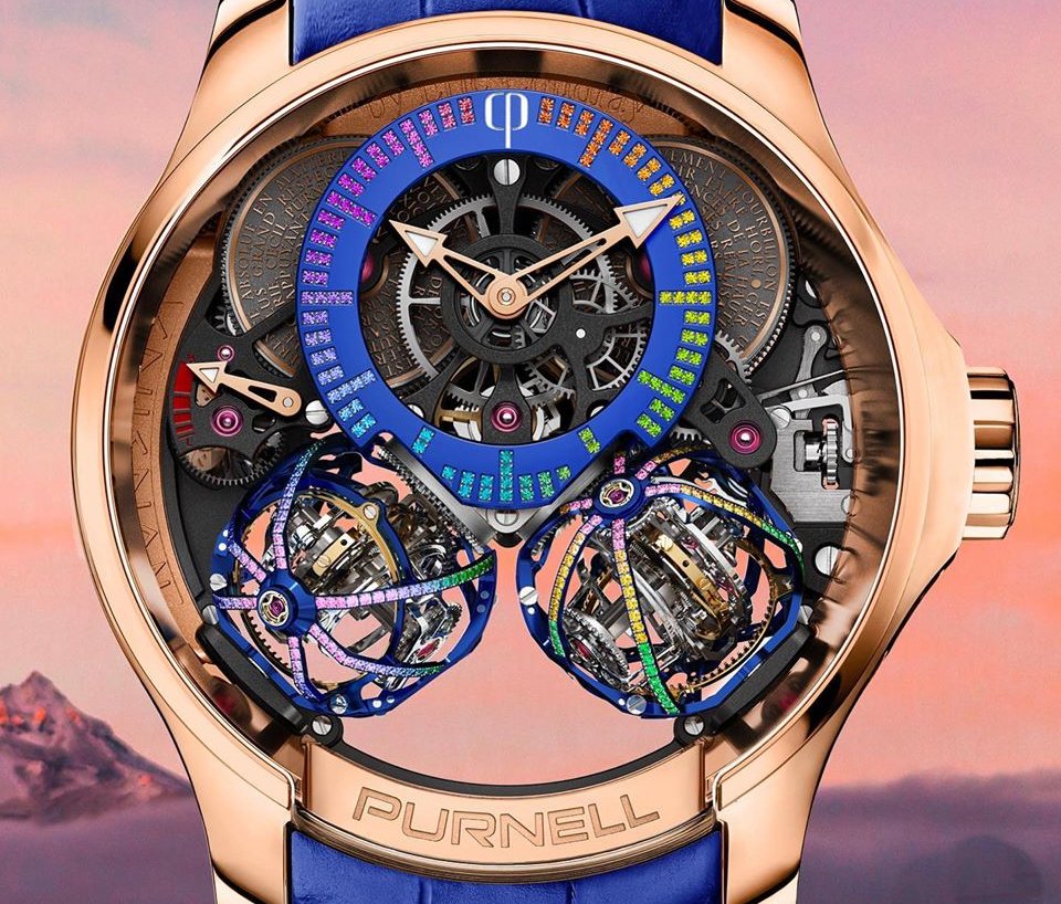 he Escape II Treasure is a powerful timekeeper driven by the force of Purnell’s ground-breaking double-Spherion movement, designed and developed by Purnell in collaboration with master watchmaker Eric Coudray. To adapt what is today the world’s fastest triple-axis tourbillon to a feminine wrist without giving up any of its power, Purnell redesigned its Escape II, the world’s first double Spherion movement.