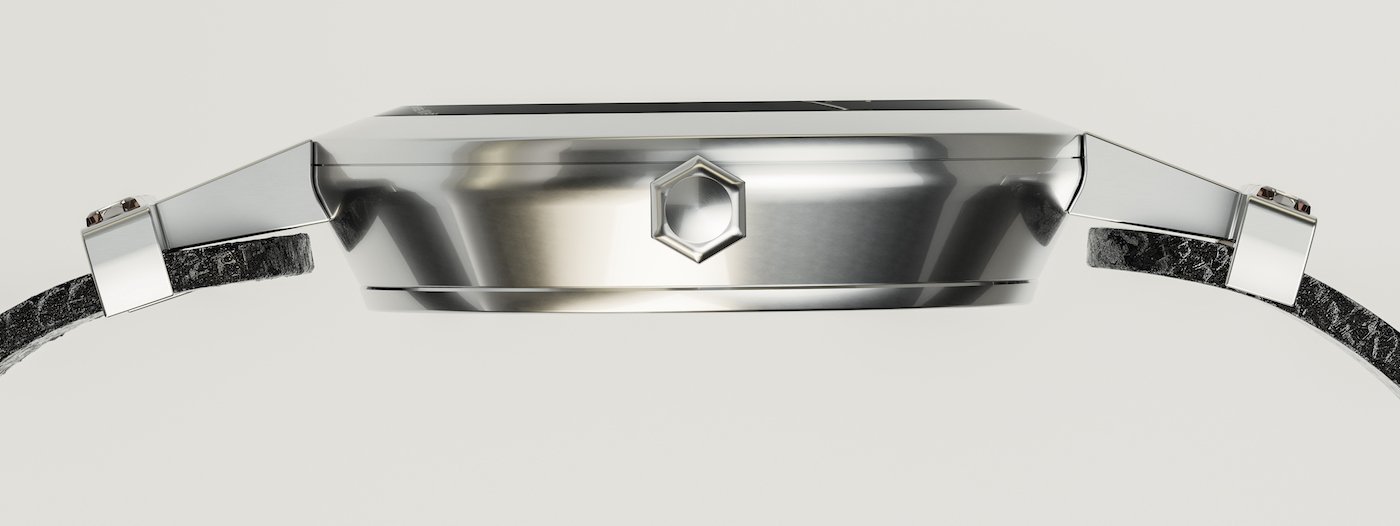 The result is on a par with the two entrepreneurs’ ambitions. The case is in 4441 steel, made from waste metal collected from companies within a small radius of the production site in the Swiss Jura. This recycled metal has a carbon footprint six times less than that of conventional steel. The dial is manufactured by Panatere in ZEP 1510®, a recycled alloy produced by electrolysis of ashes recovered from the Kebag waste incineration plant in Zuchwil, which is then wire-drawn by Grillo in Duisburg. Its environmental impact is 0.3 kg CO2 equivalent (CO2e) per kilo produced; ten times less than for a conventional copper alloy (3 kg CO2e).