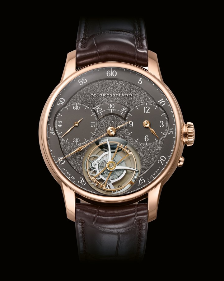 The Tourbillon Tremblage is the perfect example of the expressive power of traditional craftsmanship combined with modern aesthetics, all made possible by the array of skills mastered by the German watchmaker. The focus of the watch is the painstakingly crafted dial with its tremblage surface created by hand – a multi-part symmetrical construction made from German silver – and the sophisticated tourbillon mechanics. The model comes in rose gold and white gold versions, each of which is limited to 8 pieces.